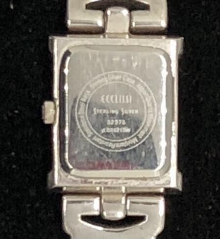 Ecclissi sterling silver woman's watch. Mother of pearl inlaid face. Stamped/marked 925 sterling silver in multiple places front & back. 6" length. Currently not running
