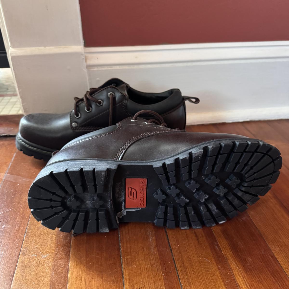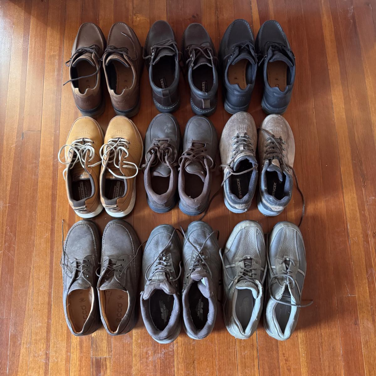Lot includes nine pairs of solid quality men’s shoes in sizes 10-12. You’ll find the following brands: Ecco, Sketchers, New Balance, Rockport, and Wenger. See pictures for condition of soles. Shipping available.
