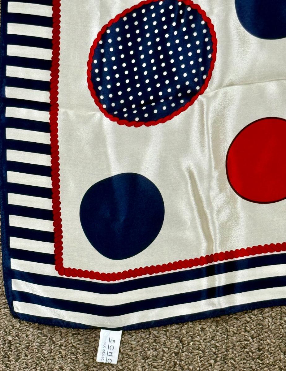 Scarf is 100% silk, and is a square measuring approx. 32" x 32". Great condition, made in Japan.
