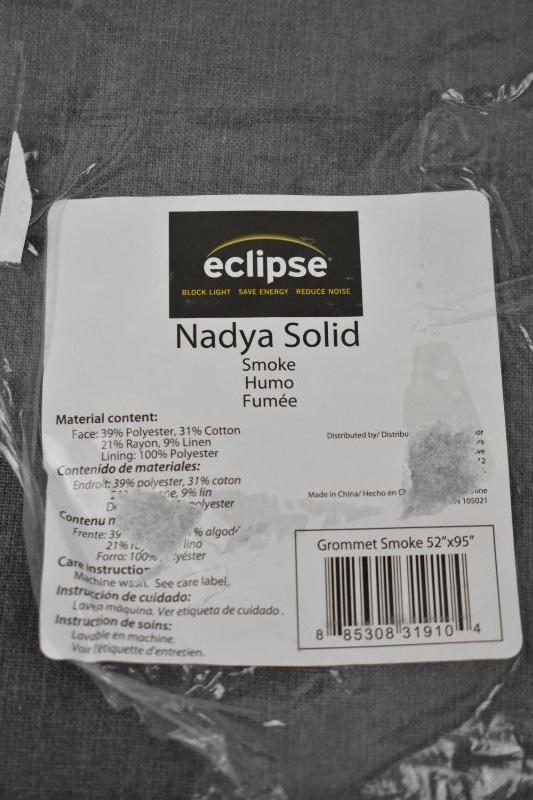 Eclipse Black Out Curtain Panel, Nadya Solid, Grommet Style, Smoke Gray 52" x 95" - New