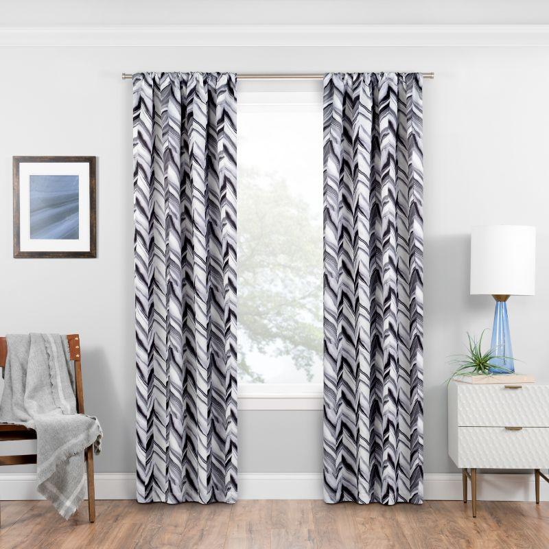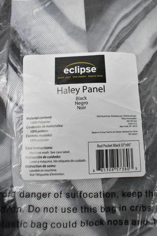 Eclipse Black Out Curtain Panels, Black Marble, Rod Pocket 37" x 95" - New