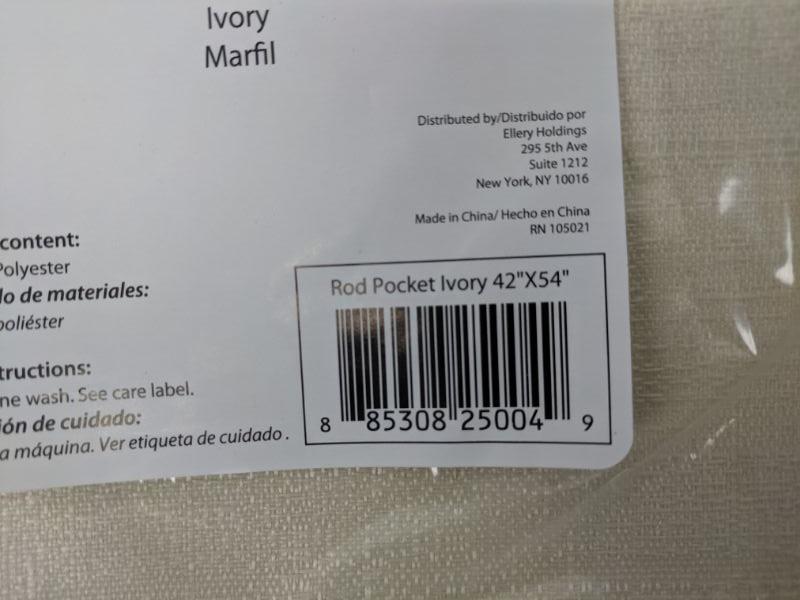 Eclipse Samara Ivory Rod Pocket Panel Pair, 42" x 54" - New
