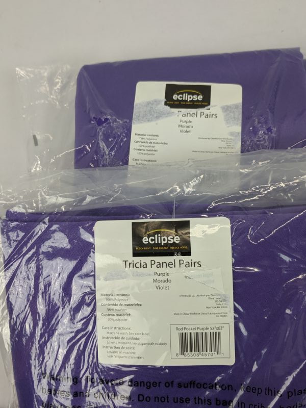 Eclipse Tricia Panel Pairs, Purple, 52" x 63", Set of 2 - New