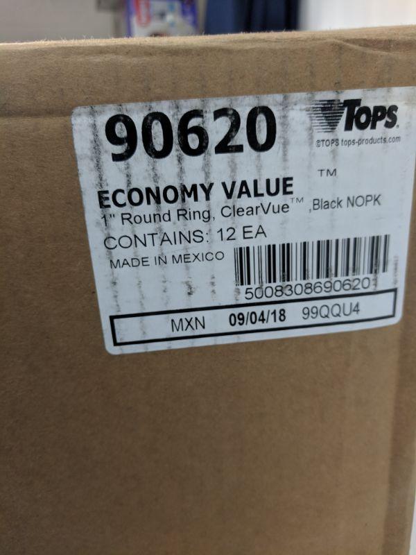 Economy Value Binders, 1" Round Ring, Black, 12 Pack - New
