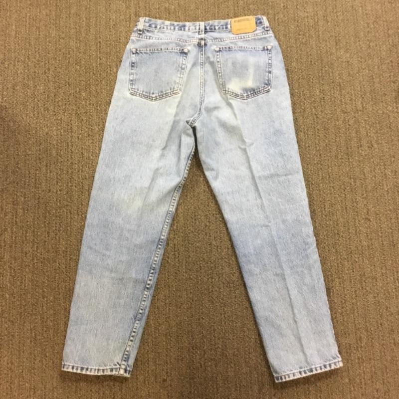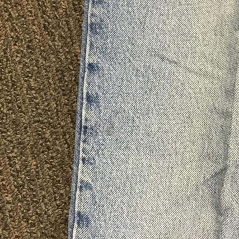Jeans are in well worn condition. There is a small stain on the right leg; see pictures.