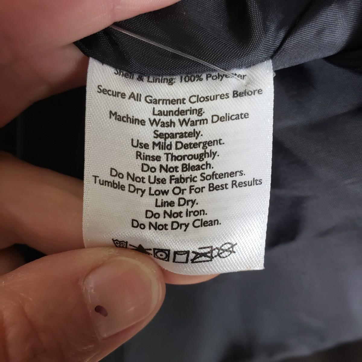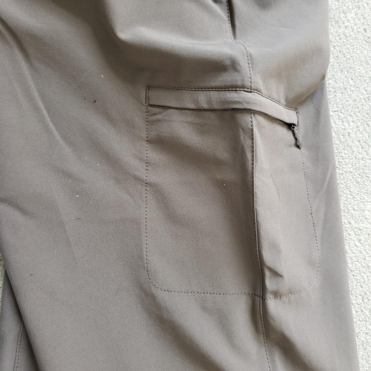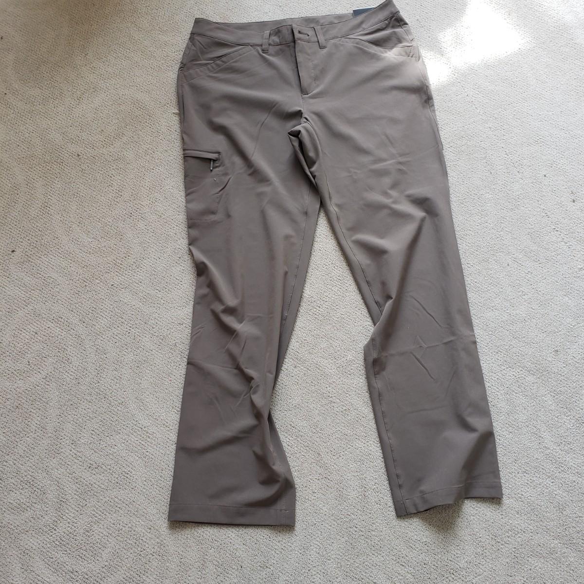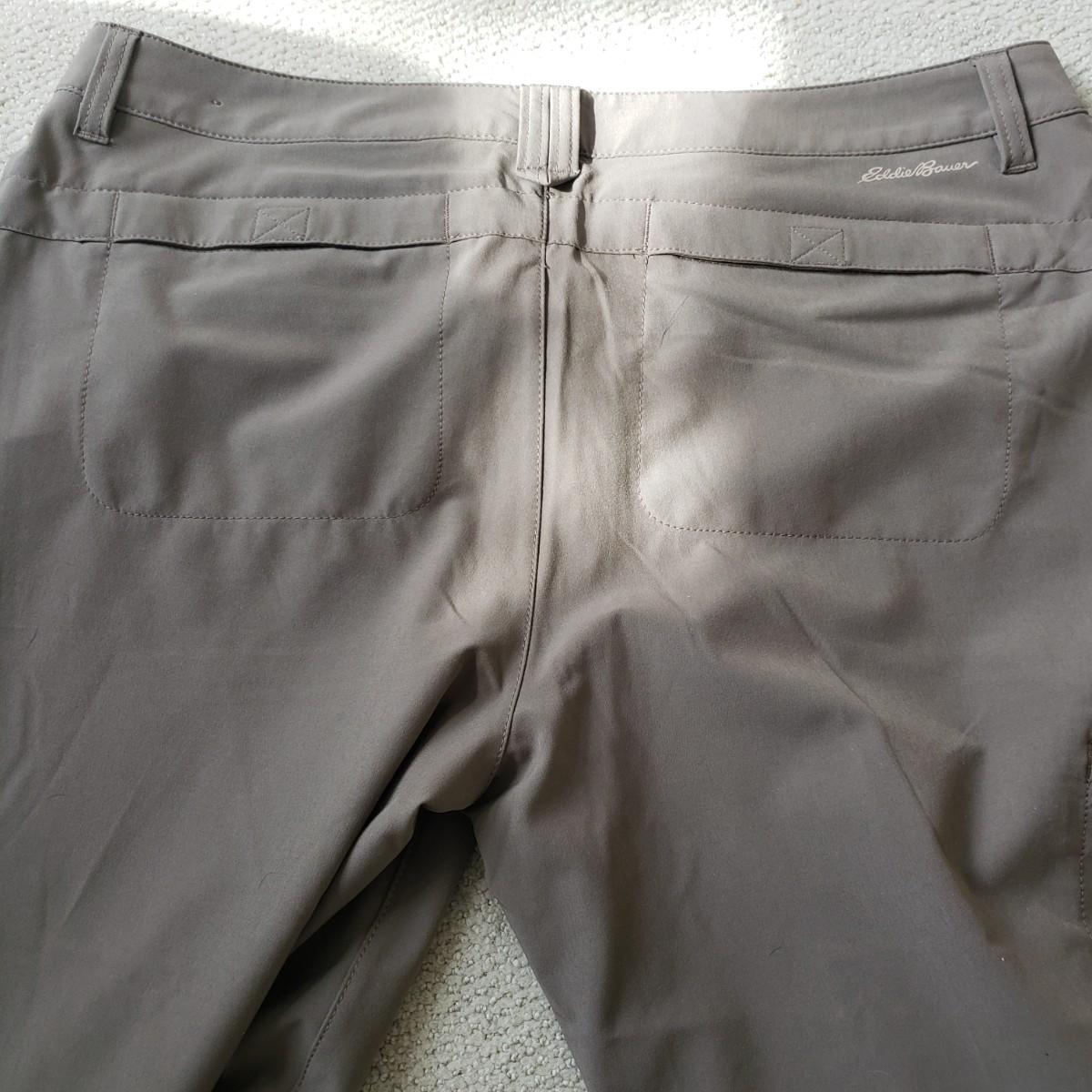 This Eddie Bauer lot features a black raincoat with removable, adjustable hood. The waist tie is missing. The new women's pants have a quick dry feature. The pants can be buttoned up from the legs. See pictures for details.