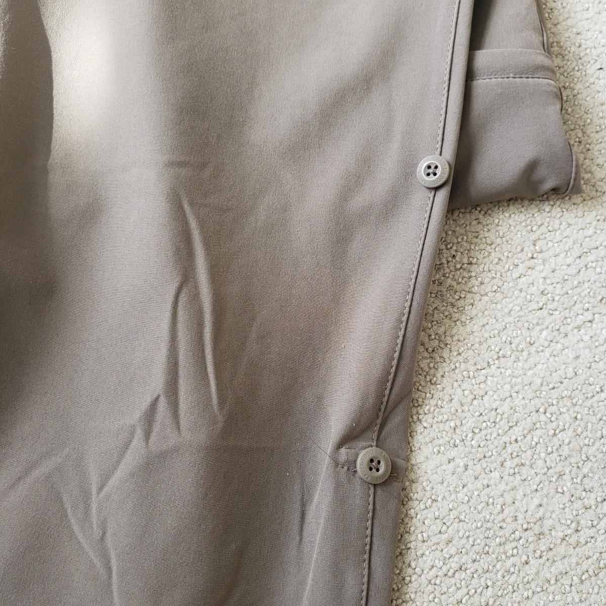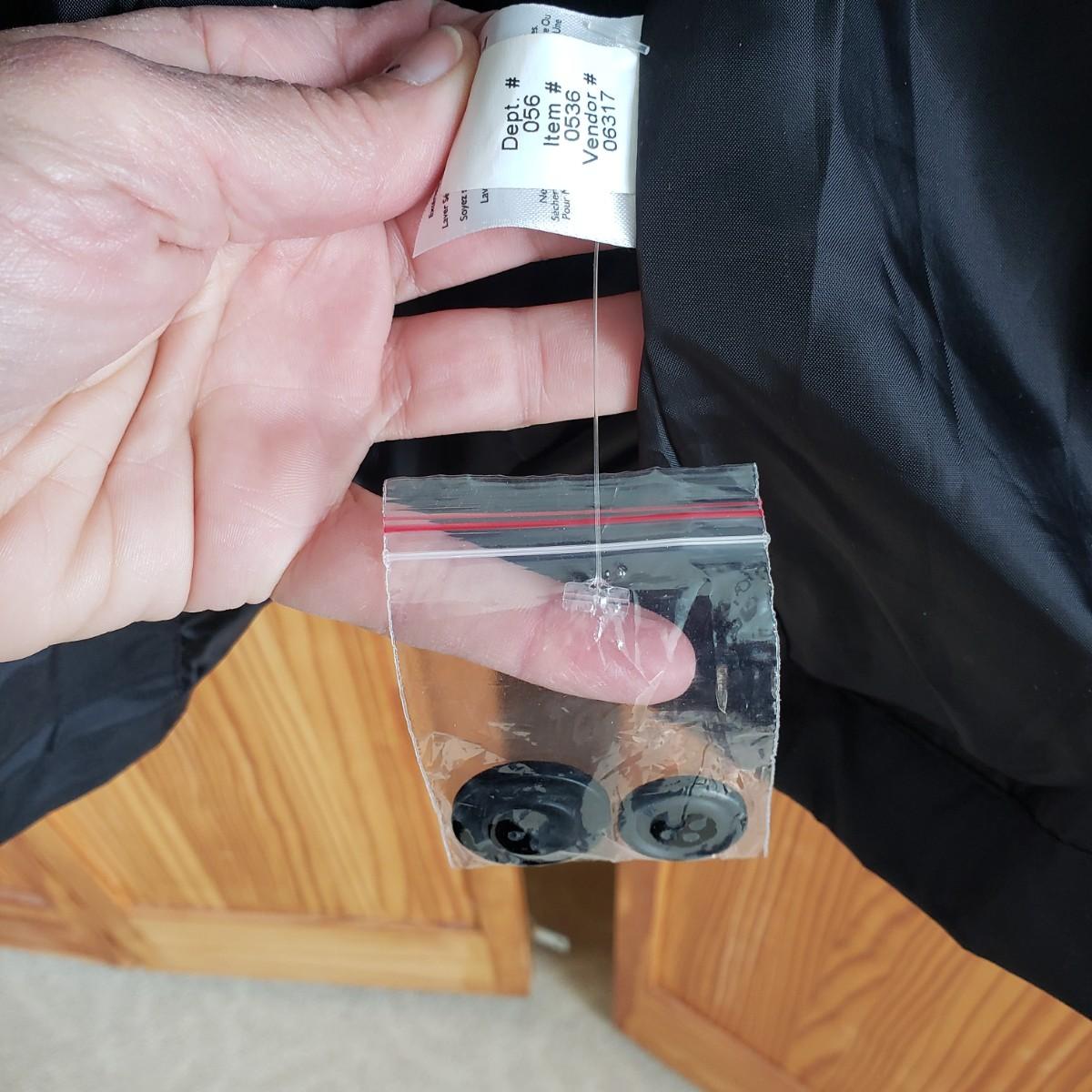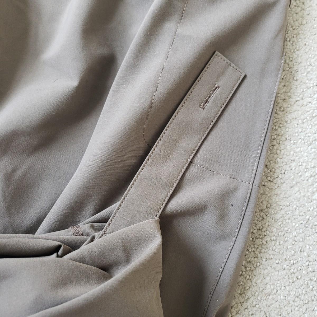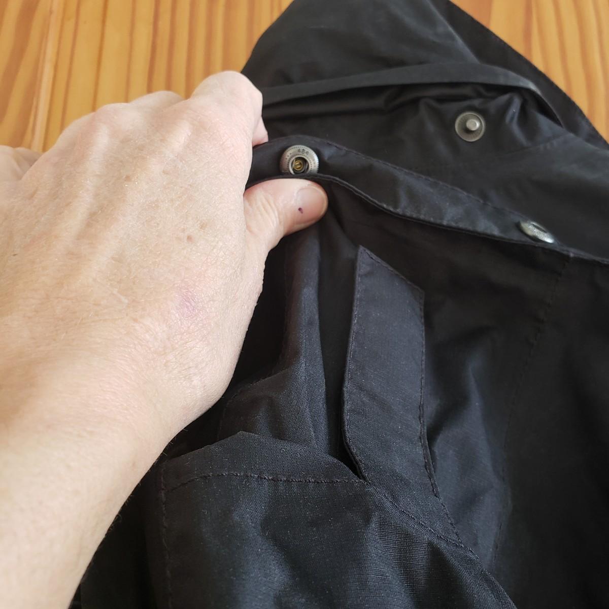 This Eddie Bauer lot features a black raincoat with removable, adjustable hood. The waist tie is missing. The new women's pants have a quick dry feature. The pants can be buttoned up from the legs. See pictures for details.
