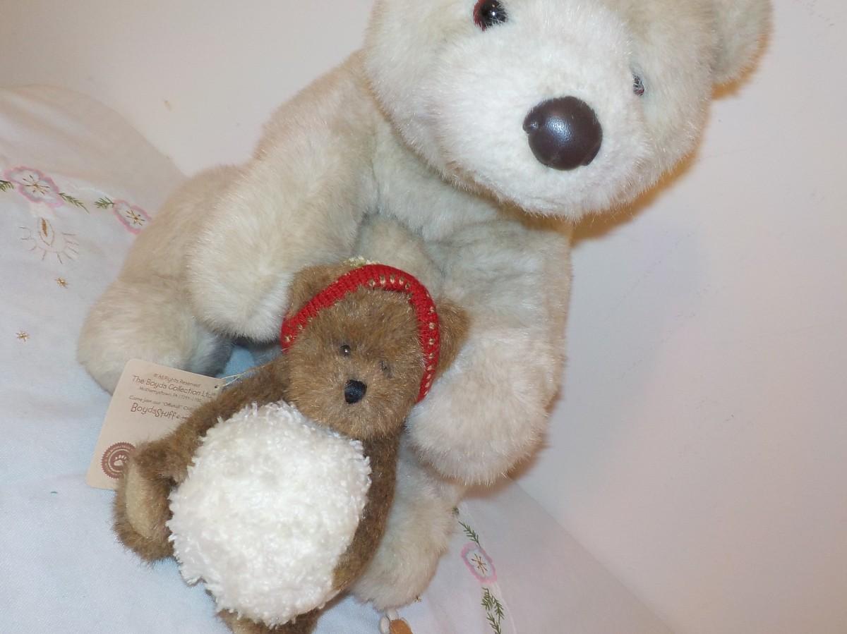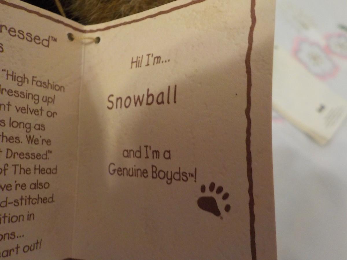 "Eddie Bauer Special Teddy Bear by Gund." and Snowball.