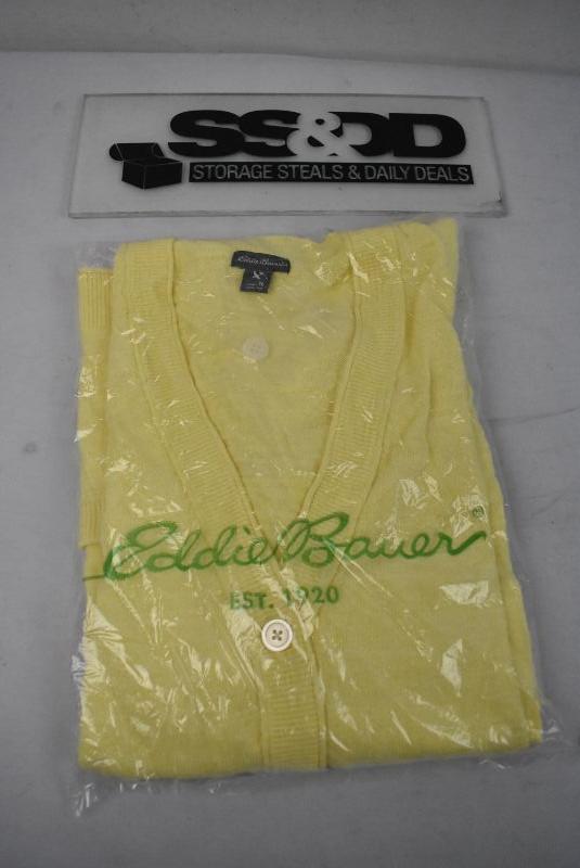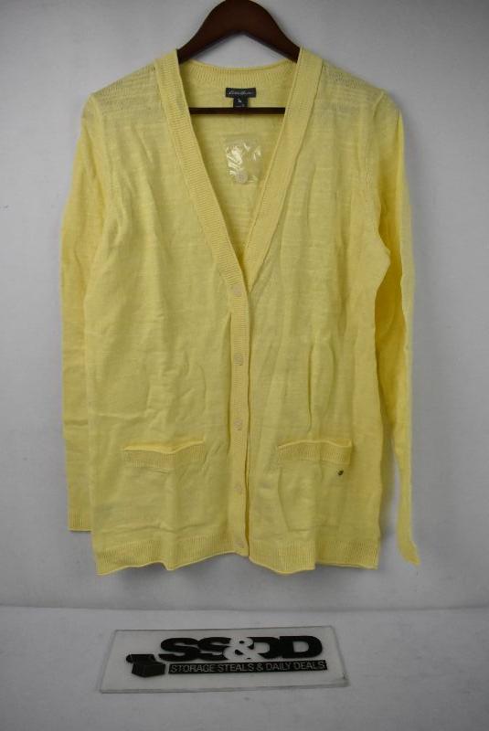 Eddie Bauer Women's Cardigan, Bright Yellow, Size Tall/Large with pockets - New