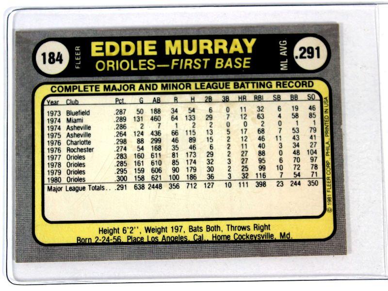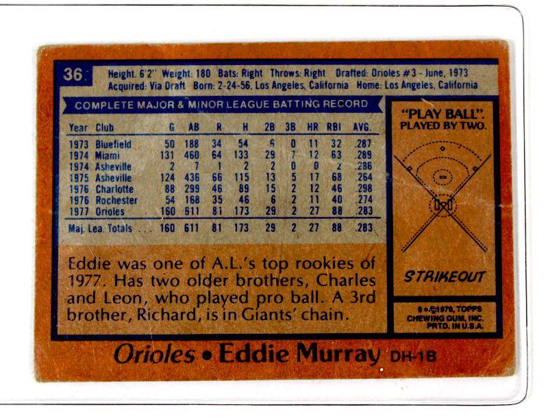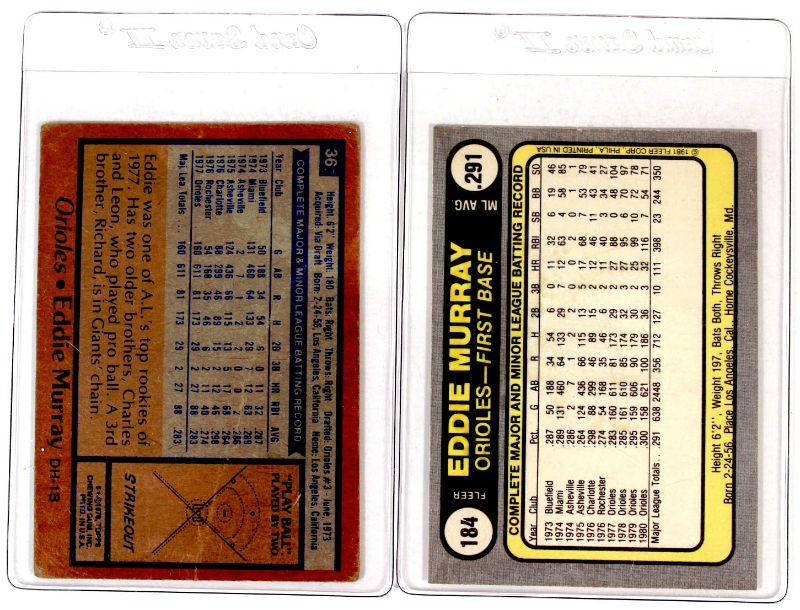 EDDIE MURRAY Baseball Cards Set 1978 Topps #36 + 1981 Topps #184