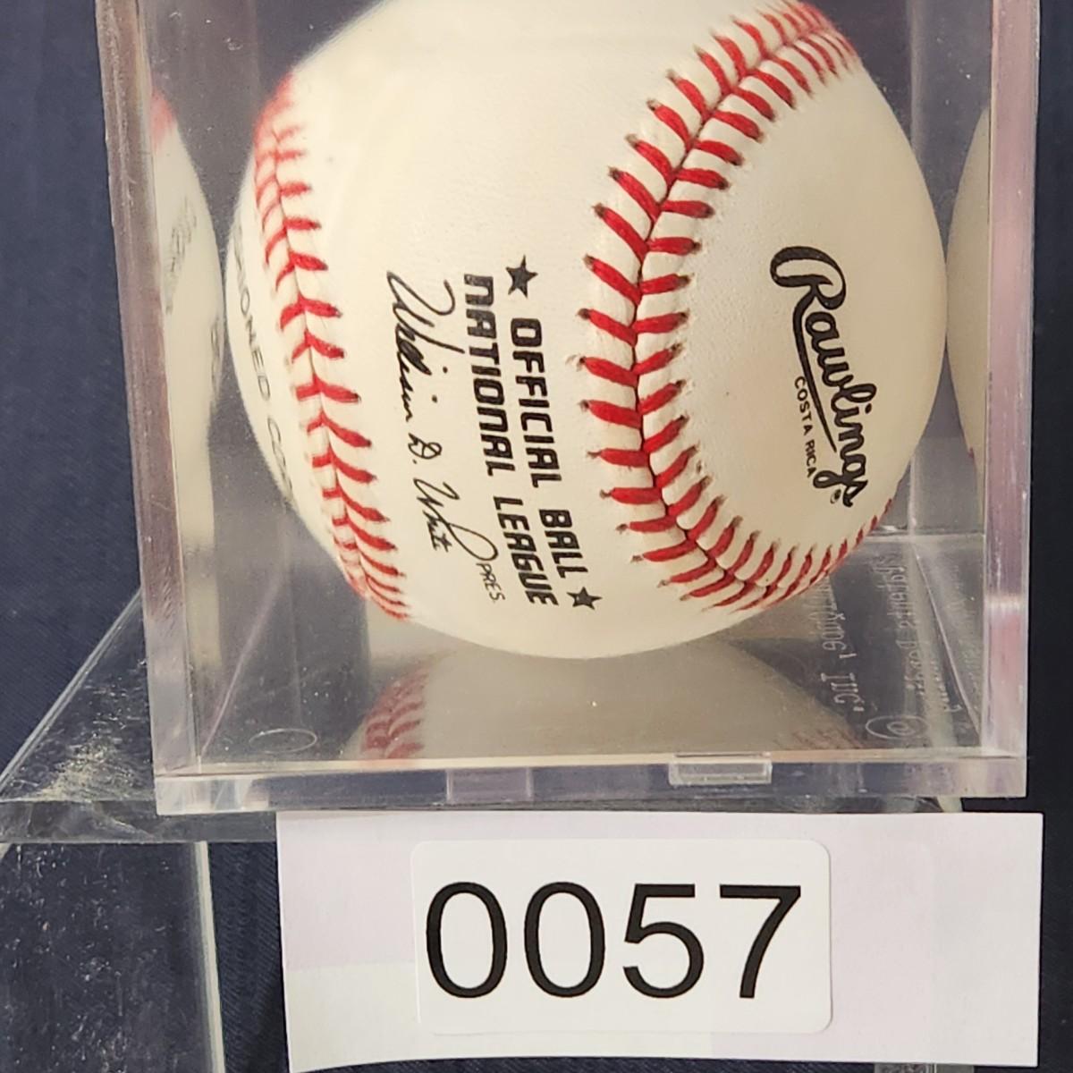 This is just one of many signed baseballs in this fantastic estate. The items in this collection were acquired over many years, most balls/bats/cards/ect signed right in front of the owner. Unless noted in the description. the item has no Certificate of Authenticity since, again - most were acquired at shows, games and many years attending spring training by this lifelong fan. Buying as is, as found in the estate and, as always, we make no guarantees and all sales are final. NEVER a Buyer's Premium or Credit Card Fee added. Nationwide shipping is available on this lot - all packages will be insured at purchasers cost to amount bid. Please note = We reserve the right to request Certified Funds to any/all invoice totals in excess of $1000. If you have any questions regarding these terms & conditions, please contact us before the final day of the auction as final hours of bidding can be very busy. Payment is due within 48 hours of invoicing. Good luck bidding!