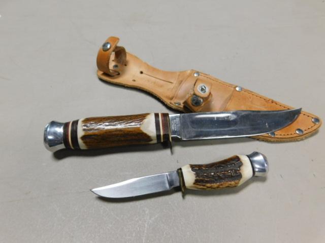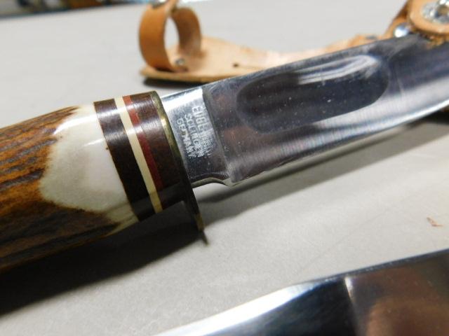 Edge Mark Solingen, Germany Bowie and Hunter Knife Set Stag Handle