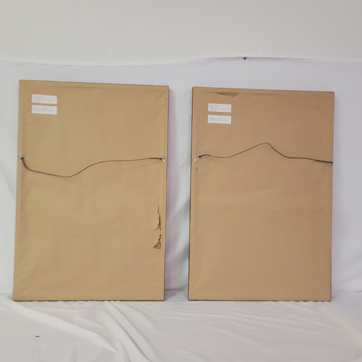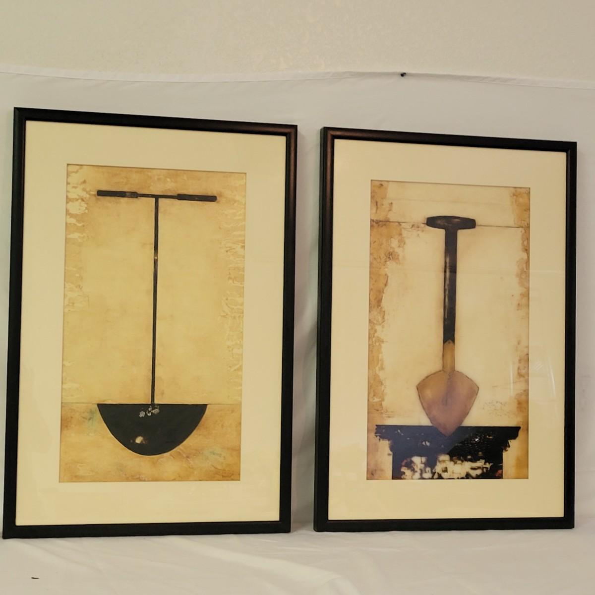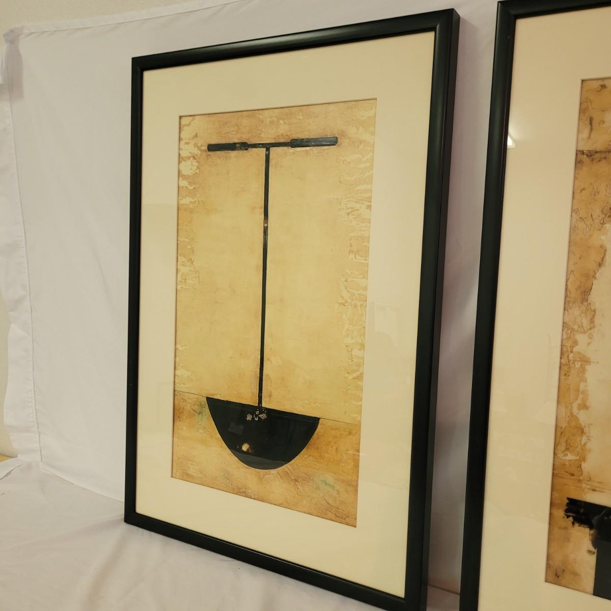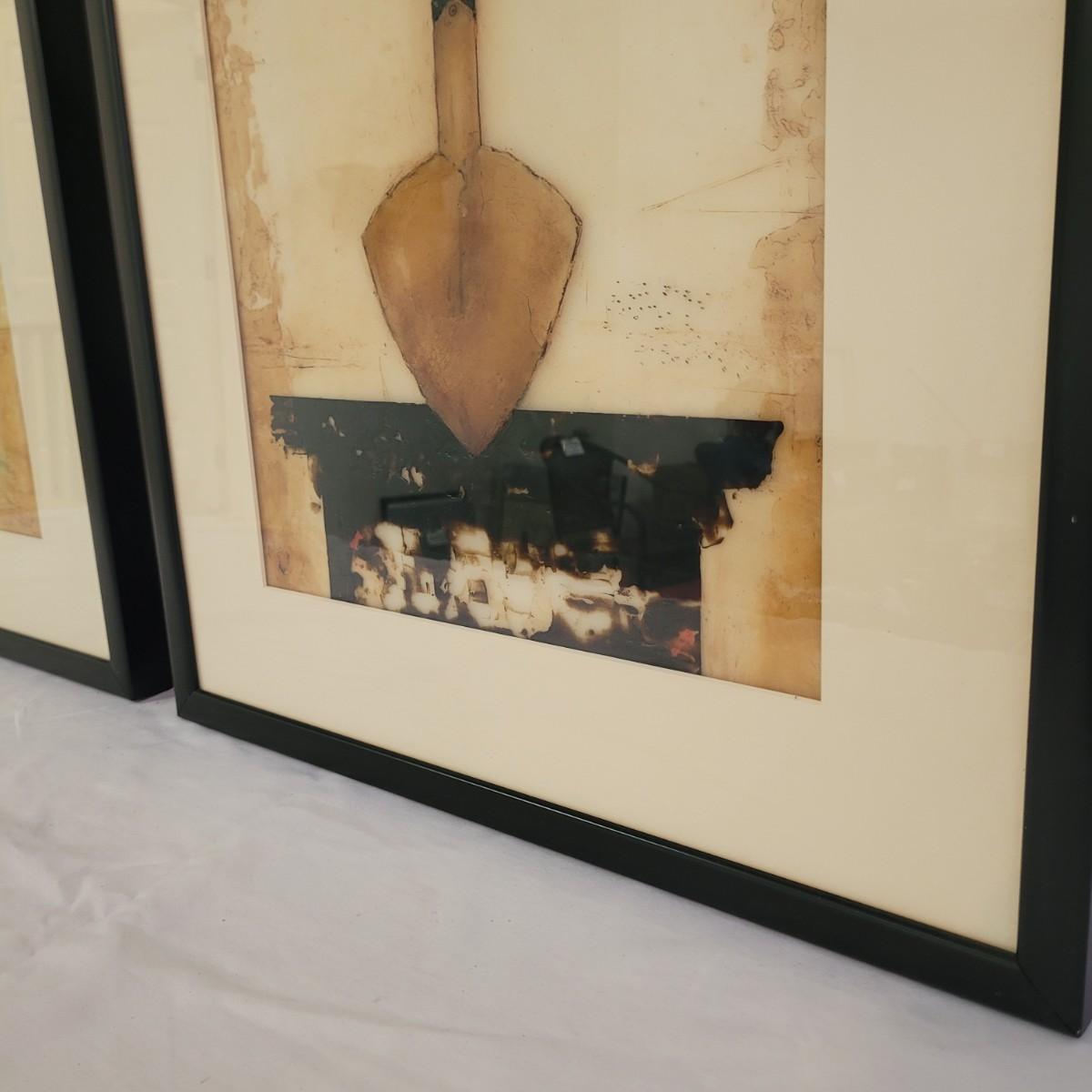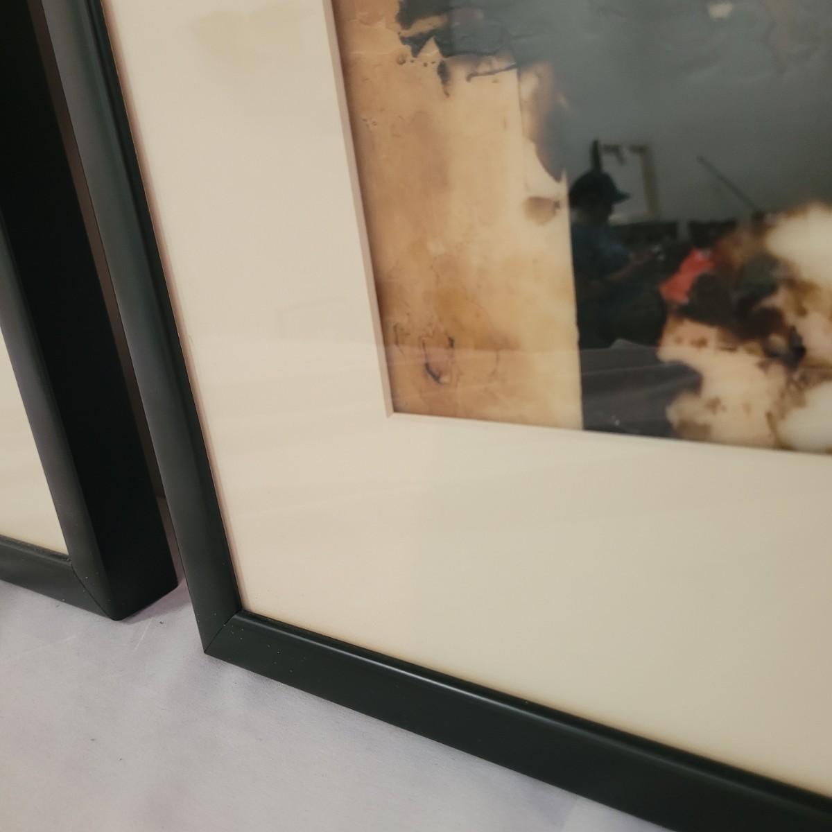 These original encaustic paintings are likely signed by the artist (signatures are probably underneath matting, statement on backside of frame states they are signed). Matted and framed in black plastic frames. Some scuffs and scratches in frames (see photos). Frames measure approximately 21.5” x 31.5.” Shipping available. Shipping art can be costly. We suggest contacting our preferred local shipping provider, Postage Express, with dimensions and getting an estimate before bidding: (828) 255-9250 or shipping@postageexpressnc.com.