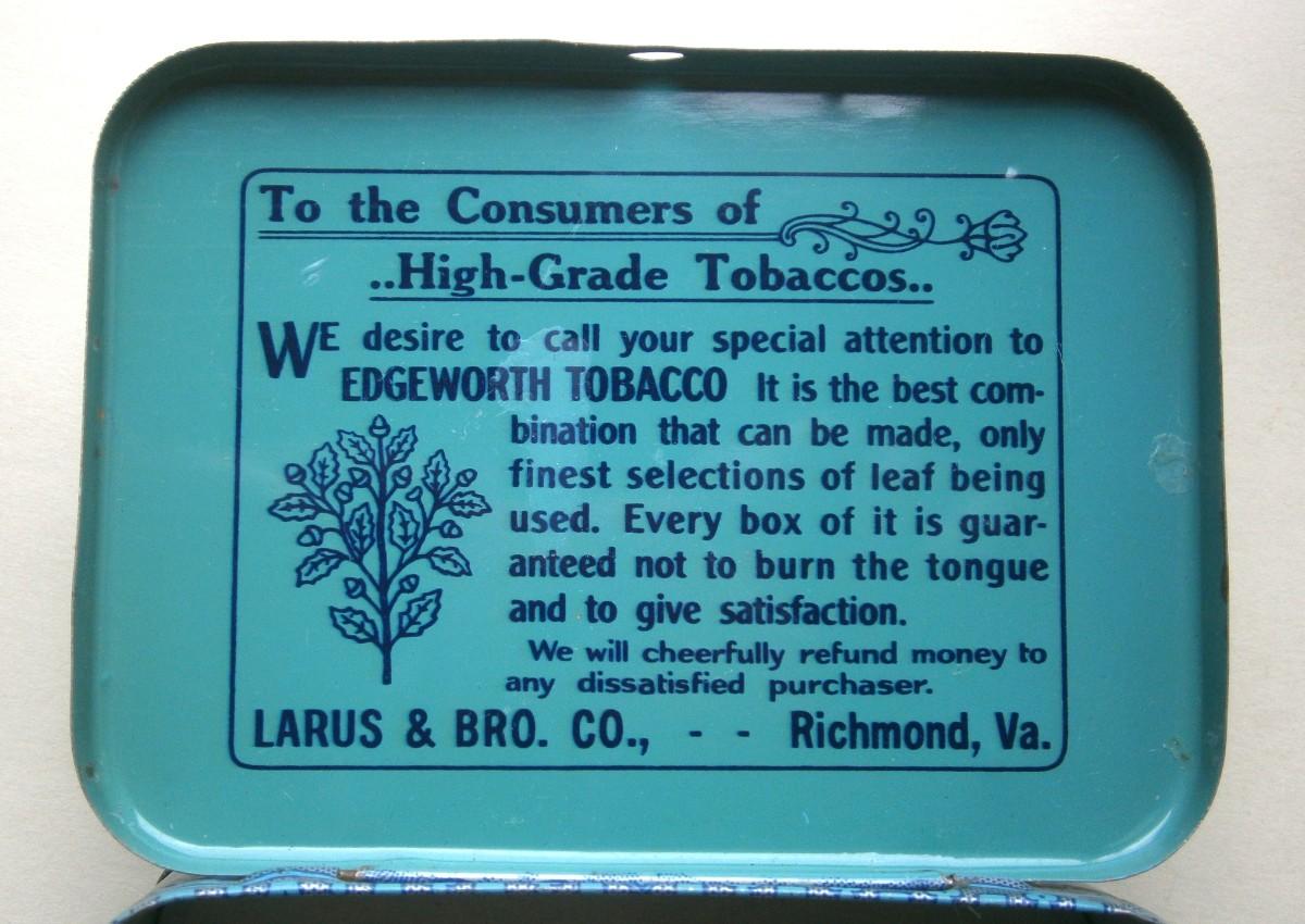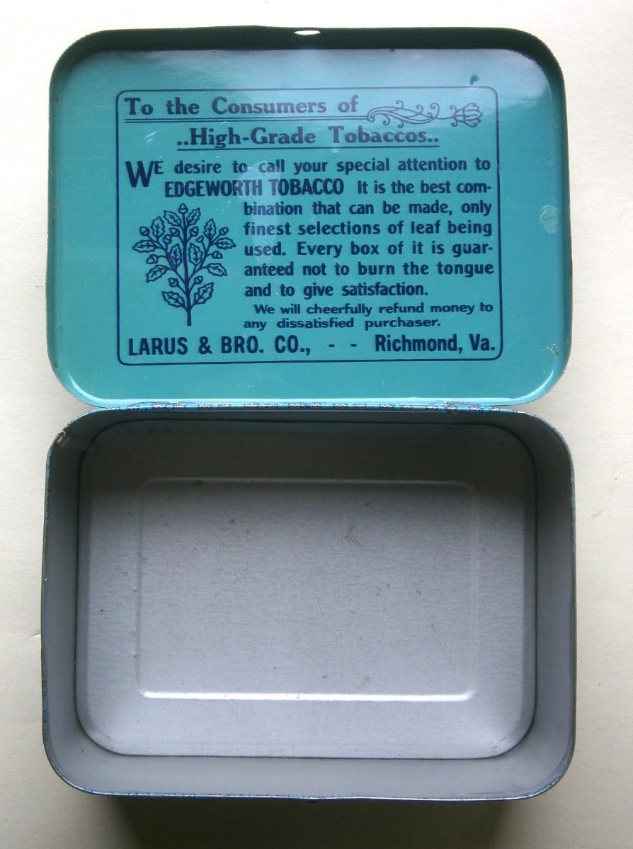 EDGEWORTH PIPE TOBACCO Tin, vintage, 4 3/8 x 3 1/4 x 2 in., lithographed tin.
