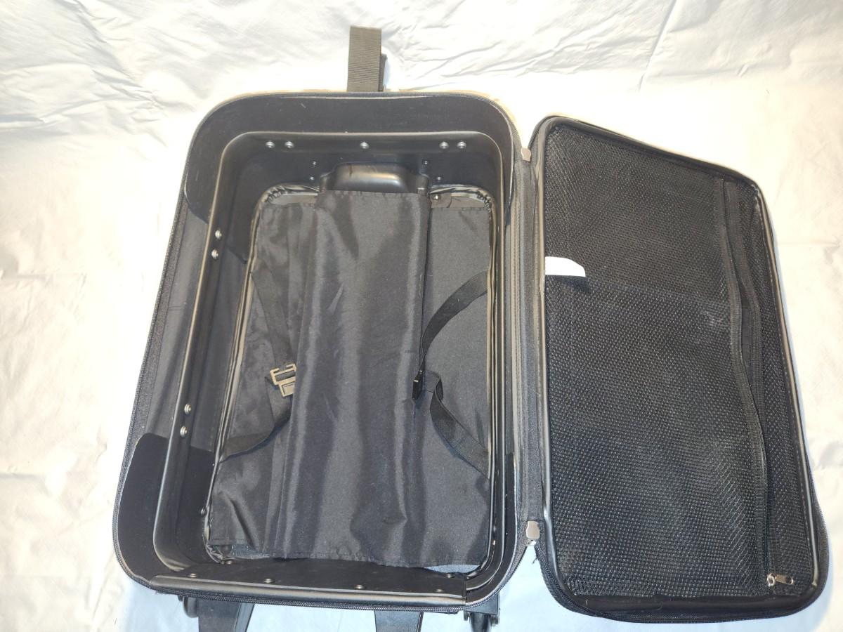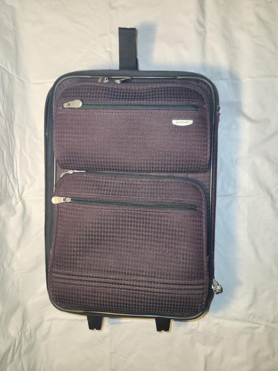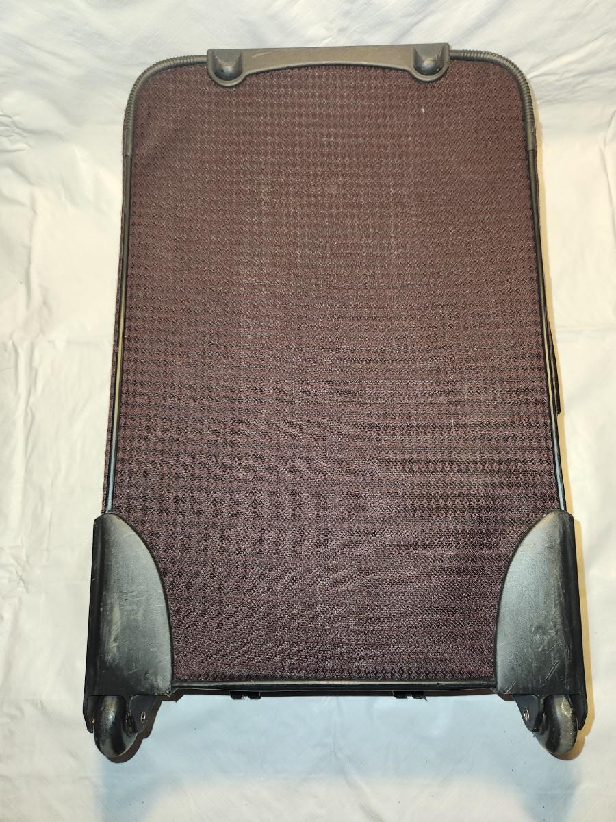 About 2 ft. Multiple storage pockets. Nothing wrong with it.