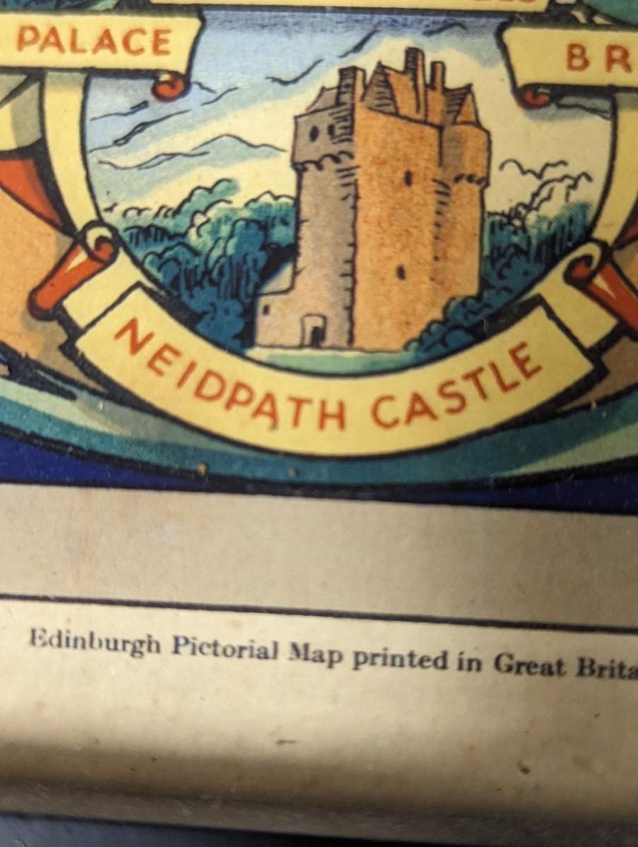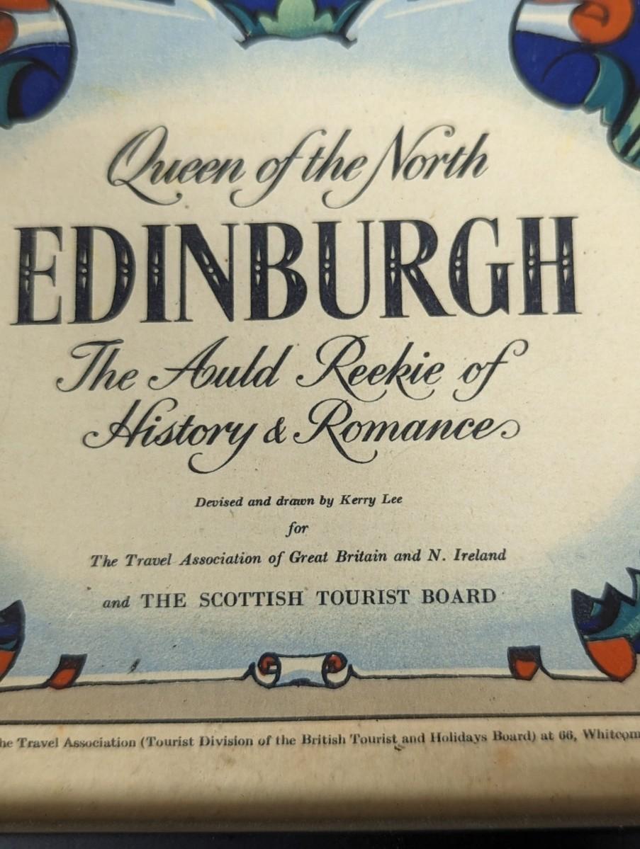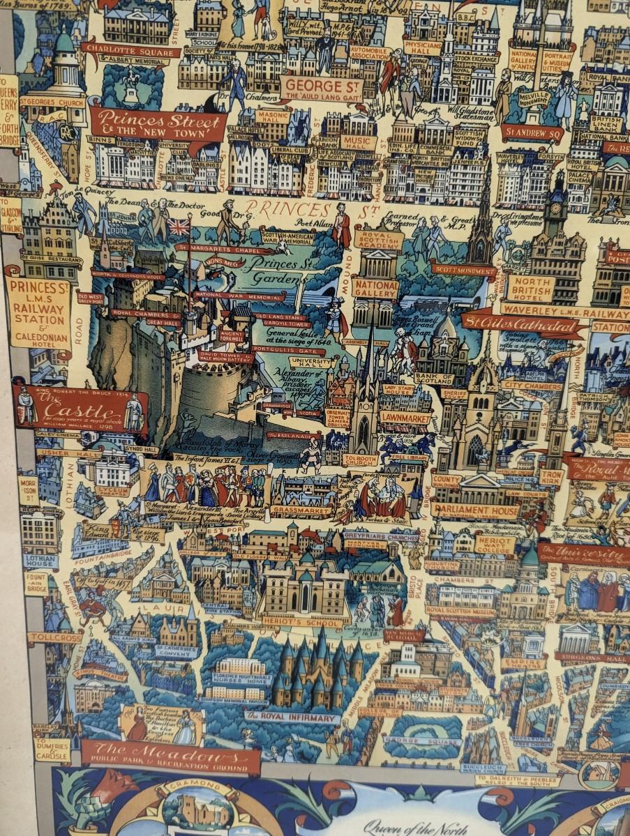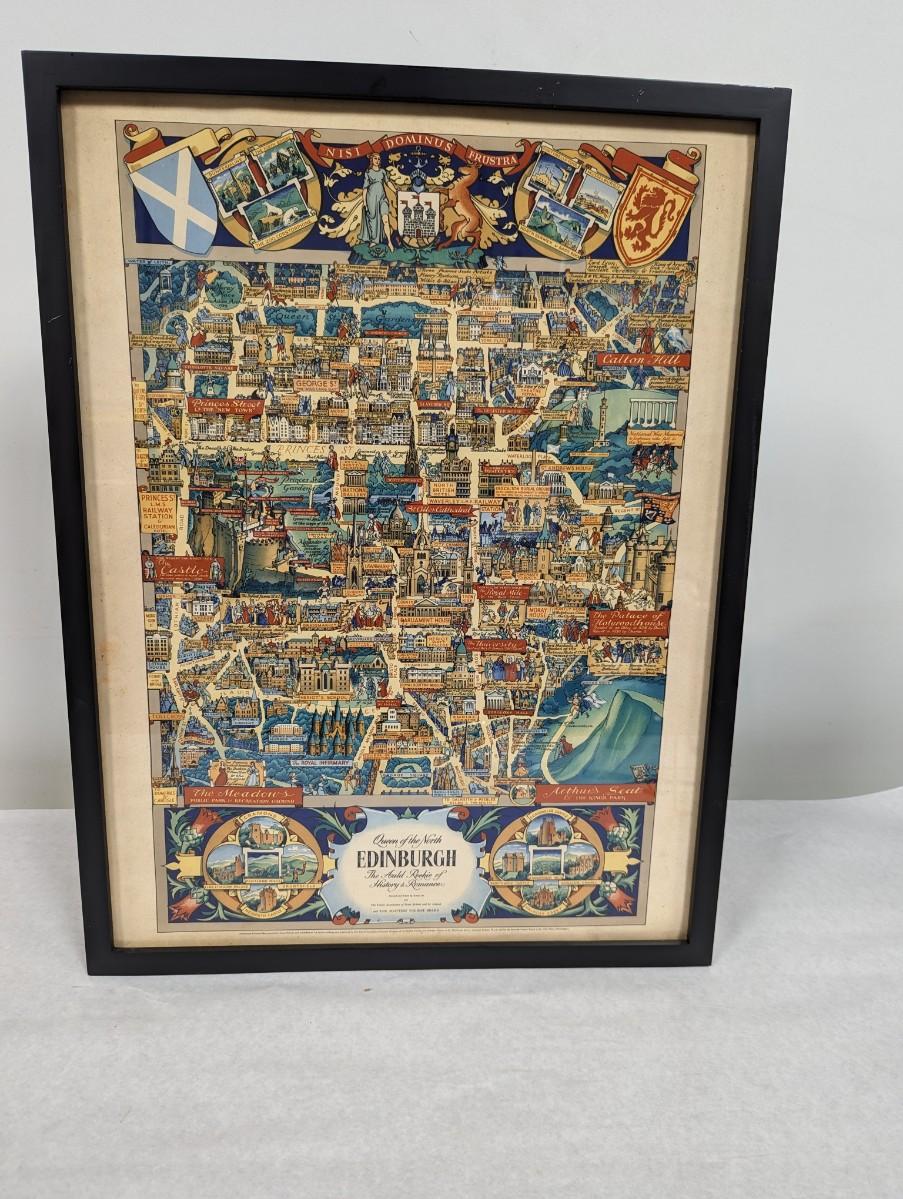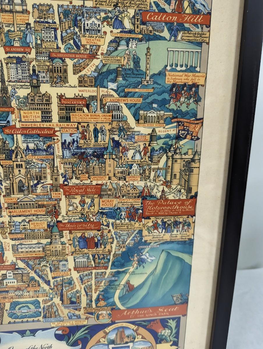 Vintage Edinburgh, Scotland Color Pictorial Map Tourist Poster Framed