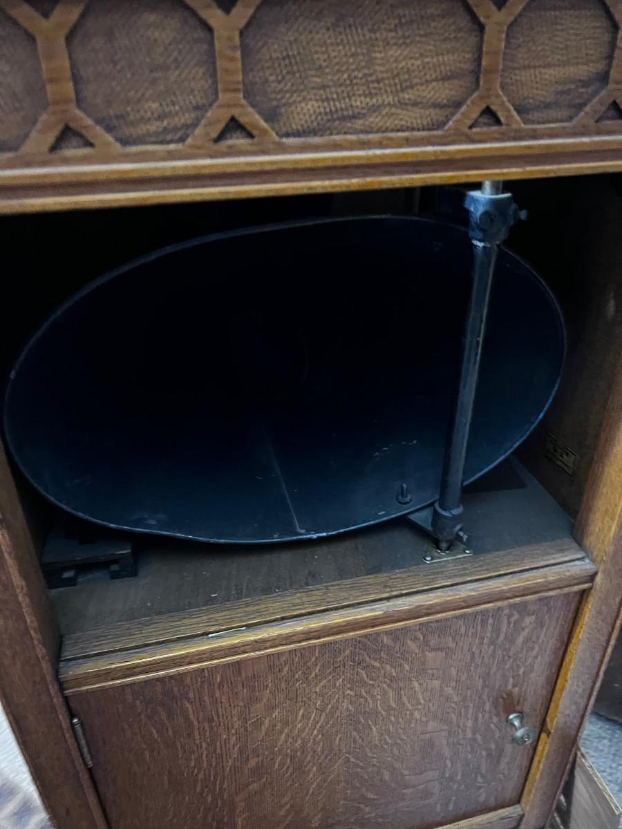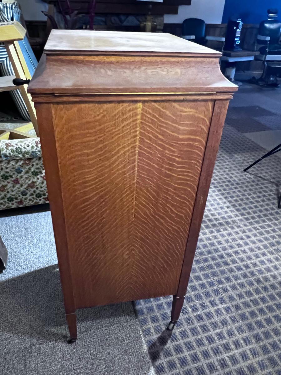 Missing its front Grill but comes with some wood. 2 Instruction Manuals. Supper FUN!!! Interesting. Wood is nice all the way around. 20 x 21 x 45" Tall. BRING HELP TO MOVE OUT!!!!