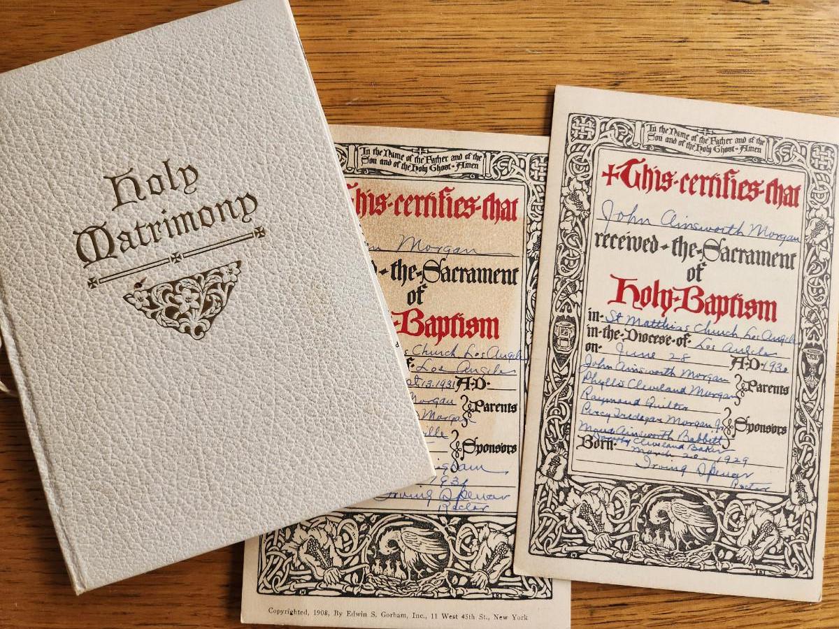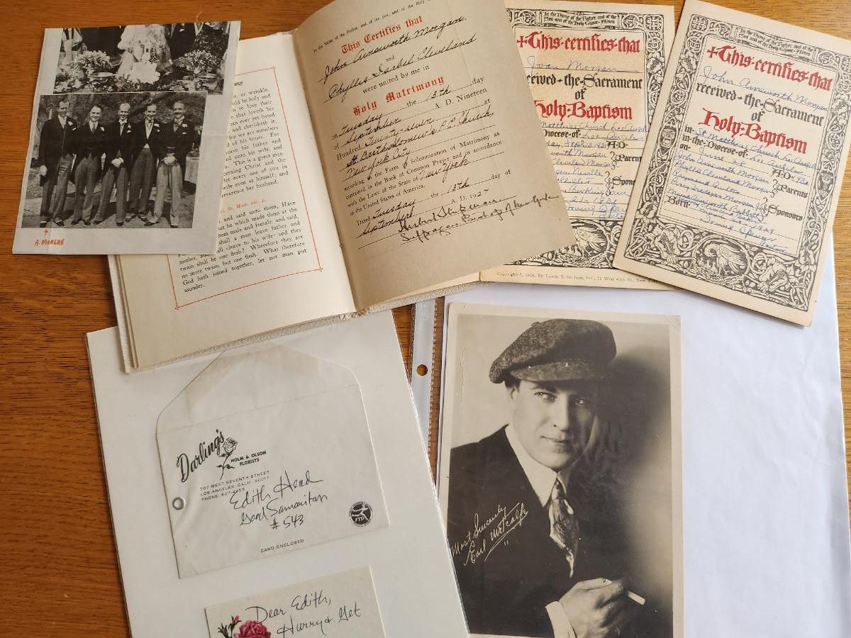 This auction lot is for an Edith Head Postage Stamp and other Hollywood Memorabilia. This grouping includes marriage and baptism certificates, floral cards to Edith Head while hospitalized, one of Edith Head's Postage Stamps and a picture of a lesser known Kentucky Movie Star named Earl Metcalfe. All items from the Ward Harrison Estate.