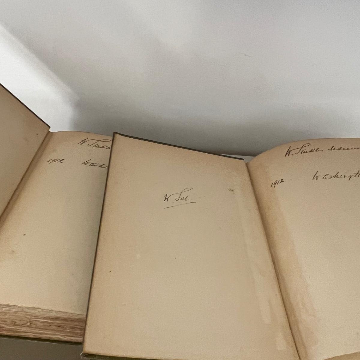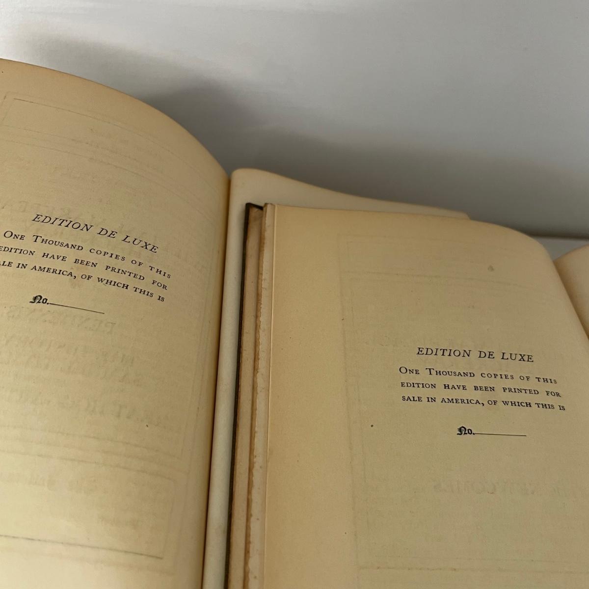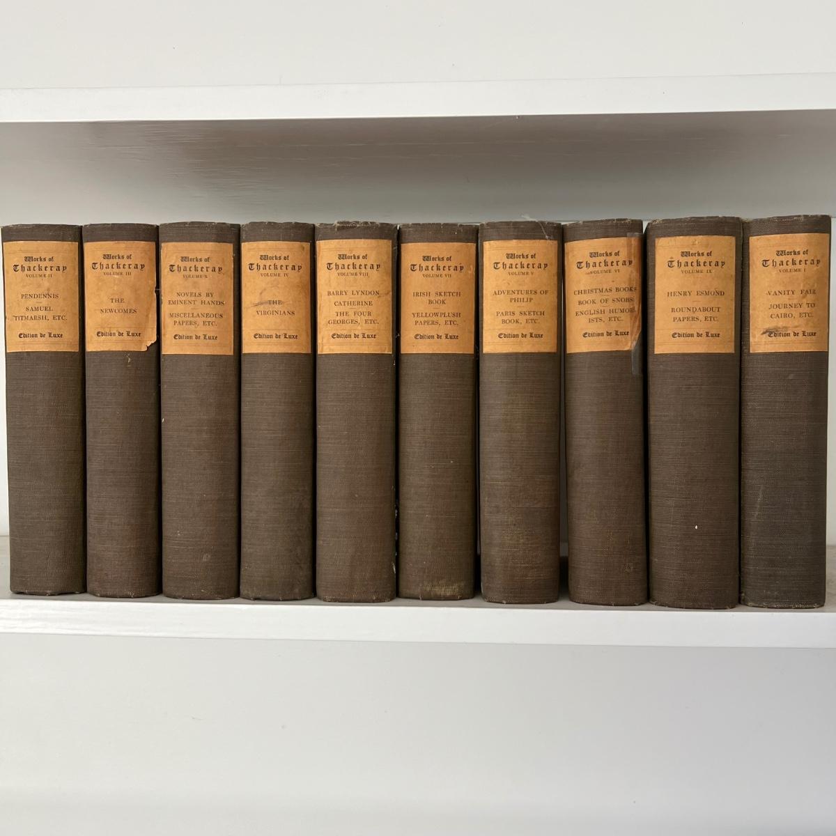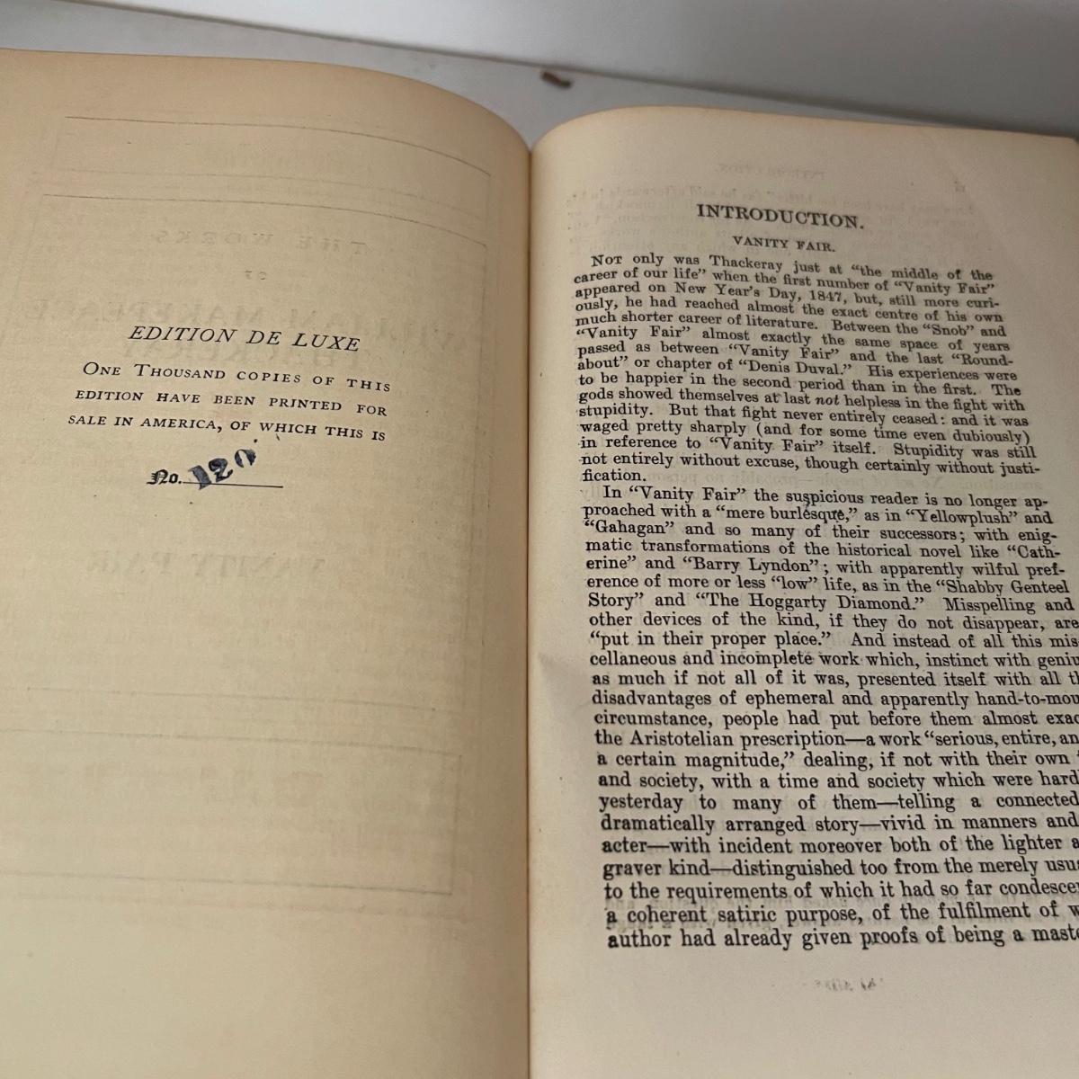 Nine book set of Works of Thackeray. They are Edition de Luxe. Note that only volume 1 has a Limited Edition number stamp, see image. all the books have the same handwritten name inside.
