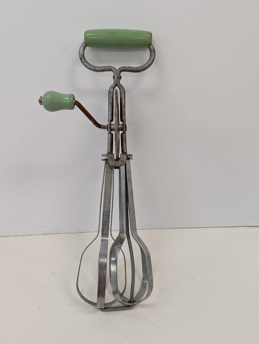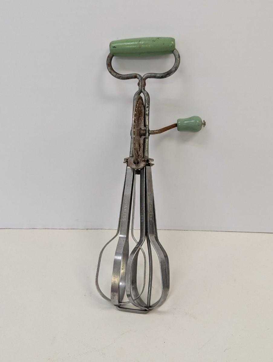 Edlund Co. Vintage Egg Beater Green Wood Handle Rotary Hand Mixer Burlington VT