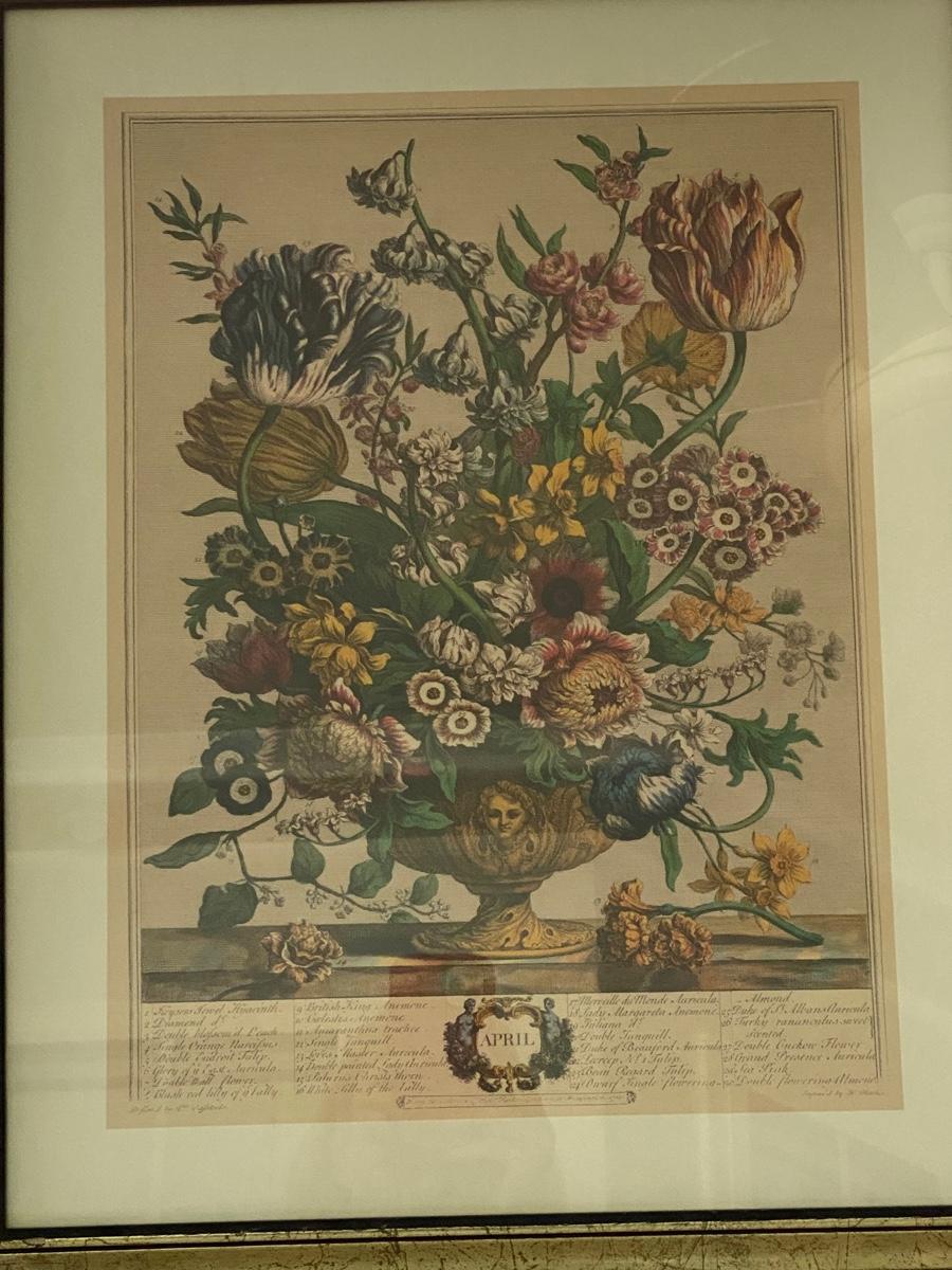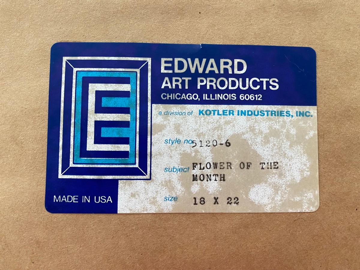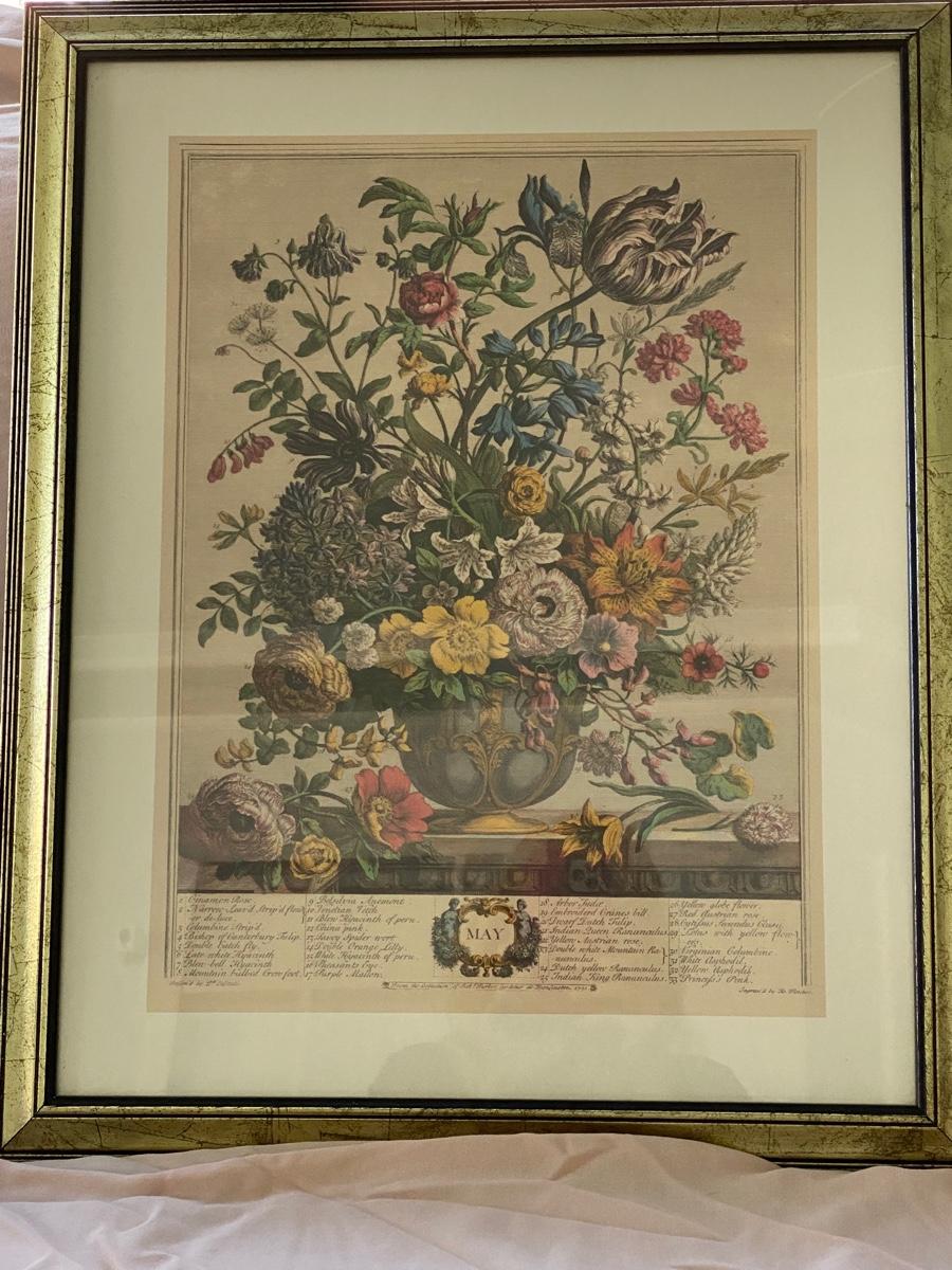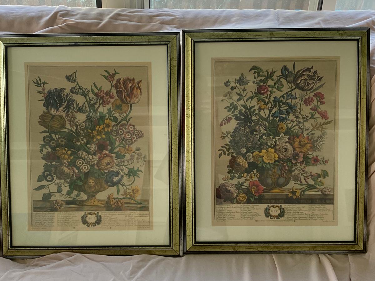 2 - Edwards Art Products Flower of the Month Prints (April and May) in beautiful gold frames. Framed size is 18”Wx22”L each. Frames have some wear.