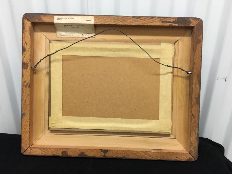 Excellent overall condition. Signed lower right. Original card on back. The painting measures 10”w x 7”h. The overall measurements, with mat and frame is 16”w x 12.5”h. Packaging and shipping services available. Please request a quote prior to bidding.