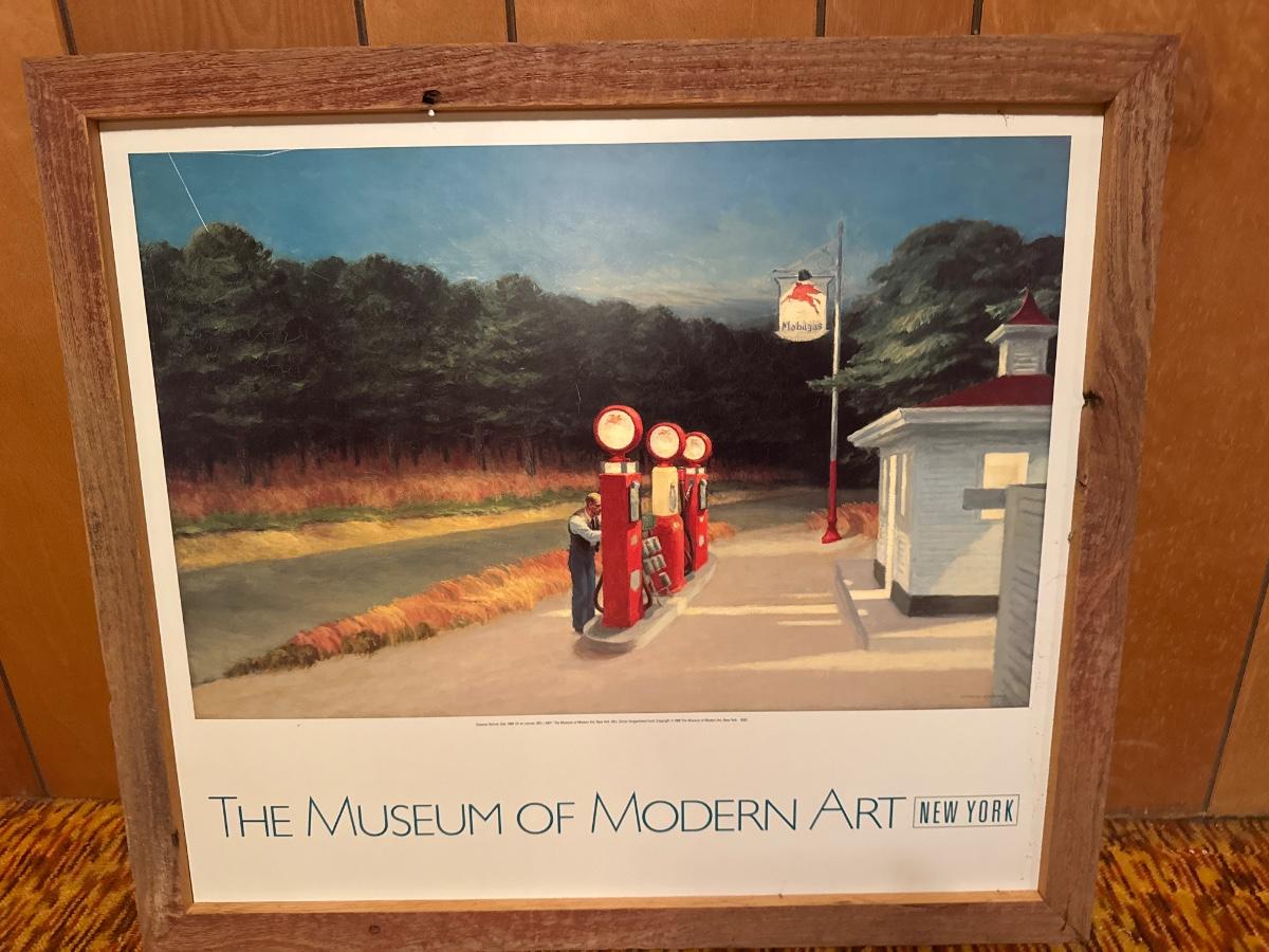 Edward Hopper Gas Museum of Modern Art in frame. Dimensions are 26 inches tall by 29 inches wide.