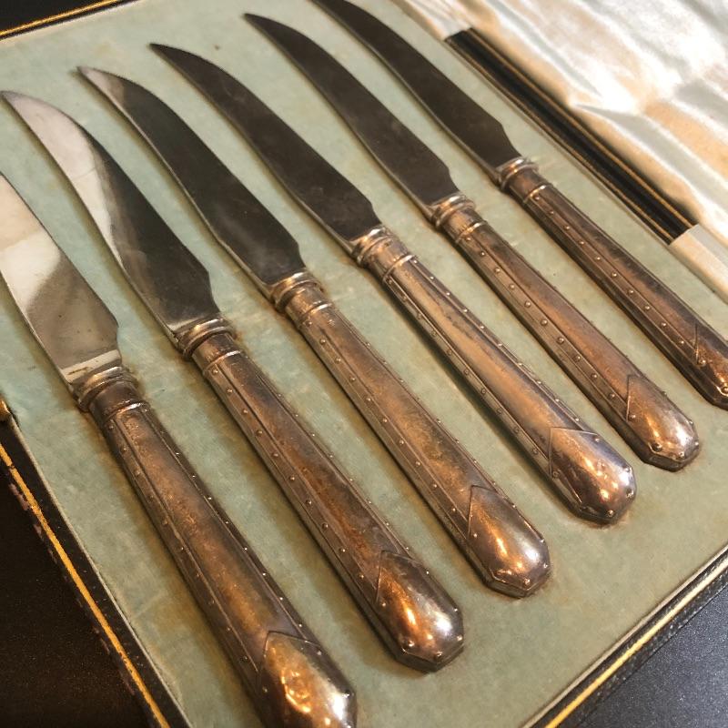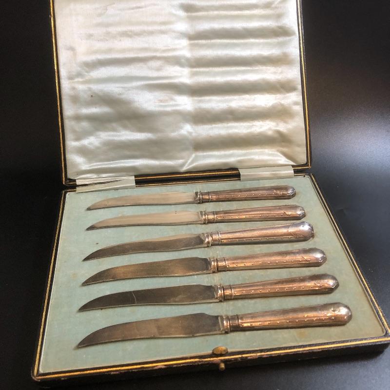 Edwardian cased Sterling Silver Handled and silver plated blades set of 6 fruit knives (6) - Silver - U.K. - 1904