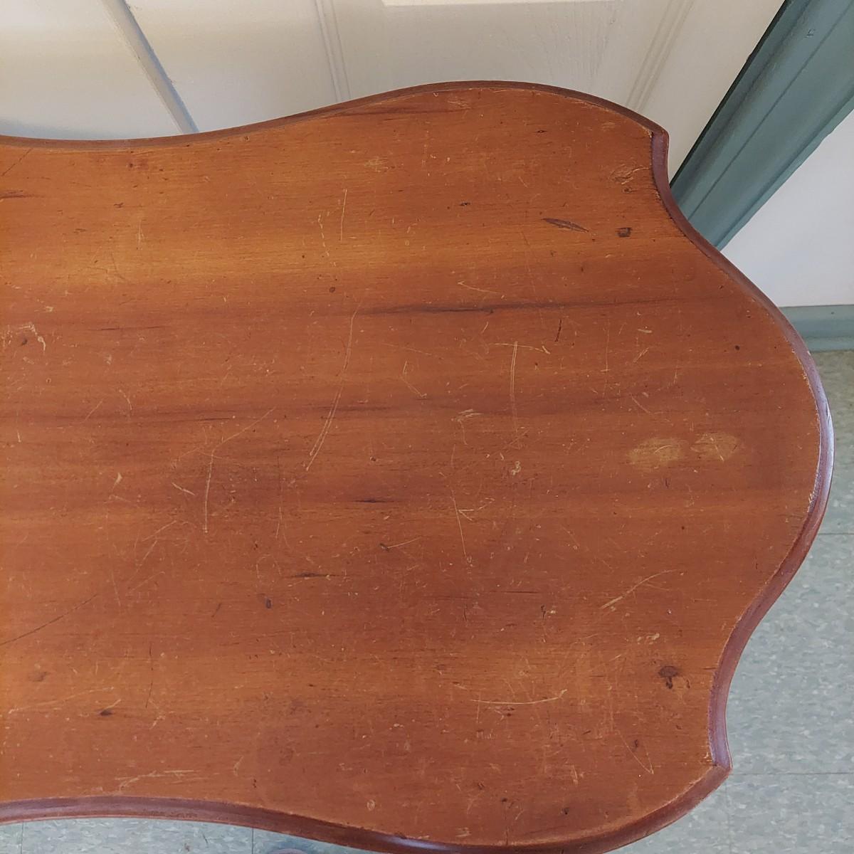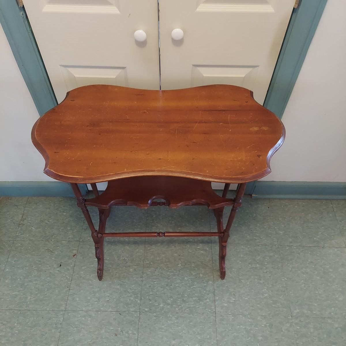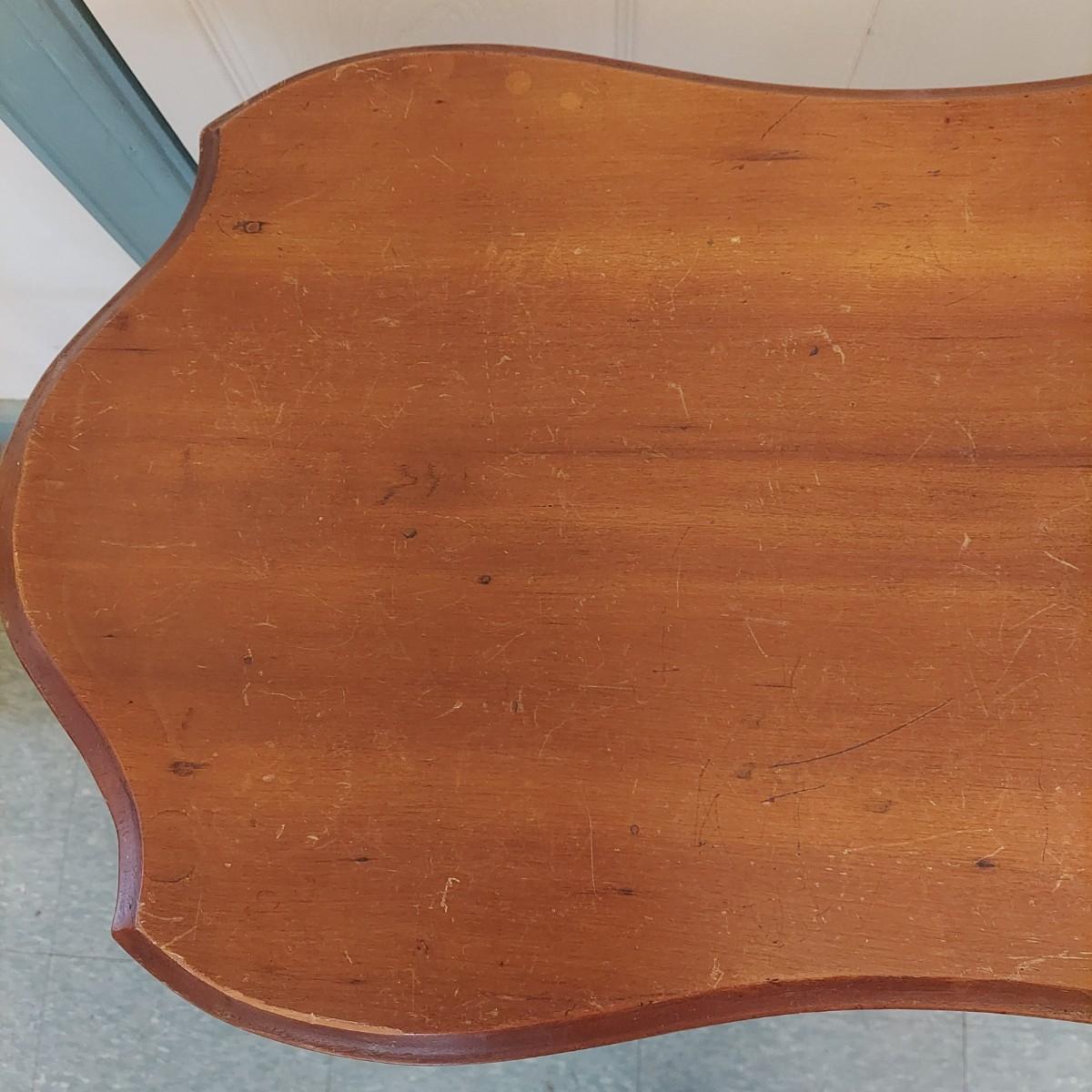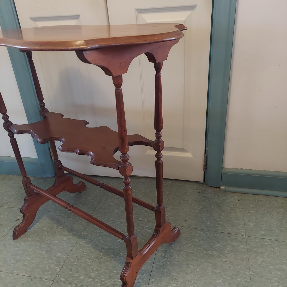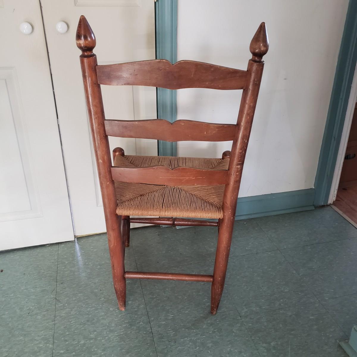 This two piece lot features a wooden side table in an Edwardian style that measures 29” x 16” x 29"H. Table is solid wood but is slightly rickety. Some wear to the top. The rush wooden chair measures 17" x 15" x 37"H, with a seat height of 18". The chair appears to be solid and blemish free. Please see photos for details. Local Pickup Only