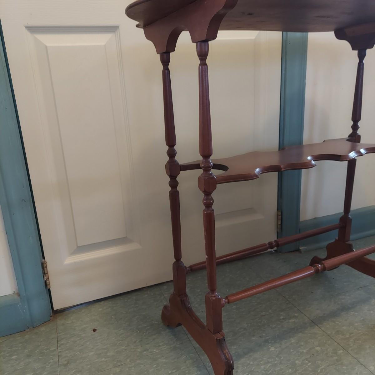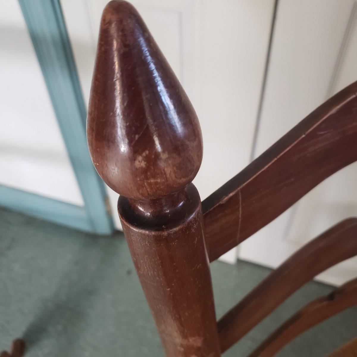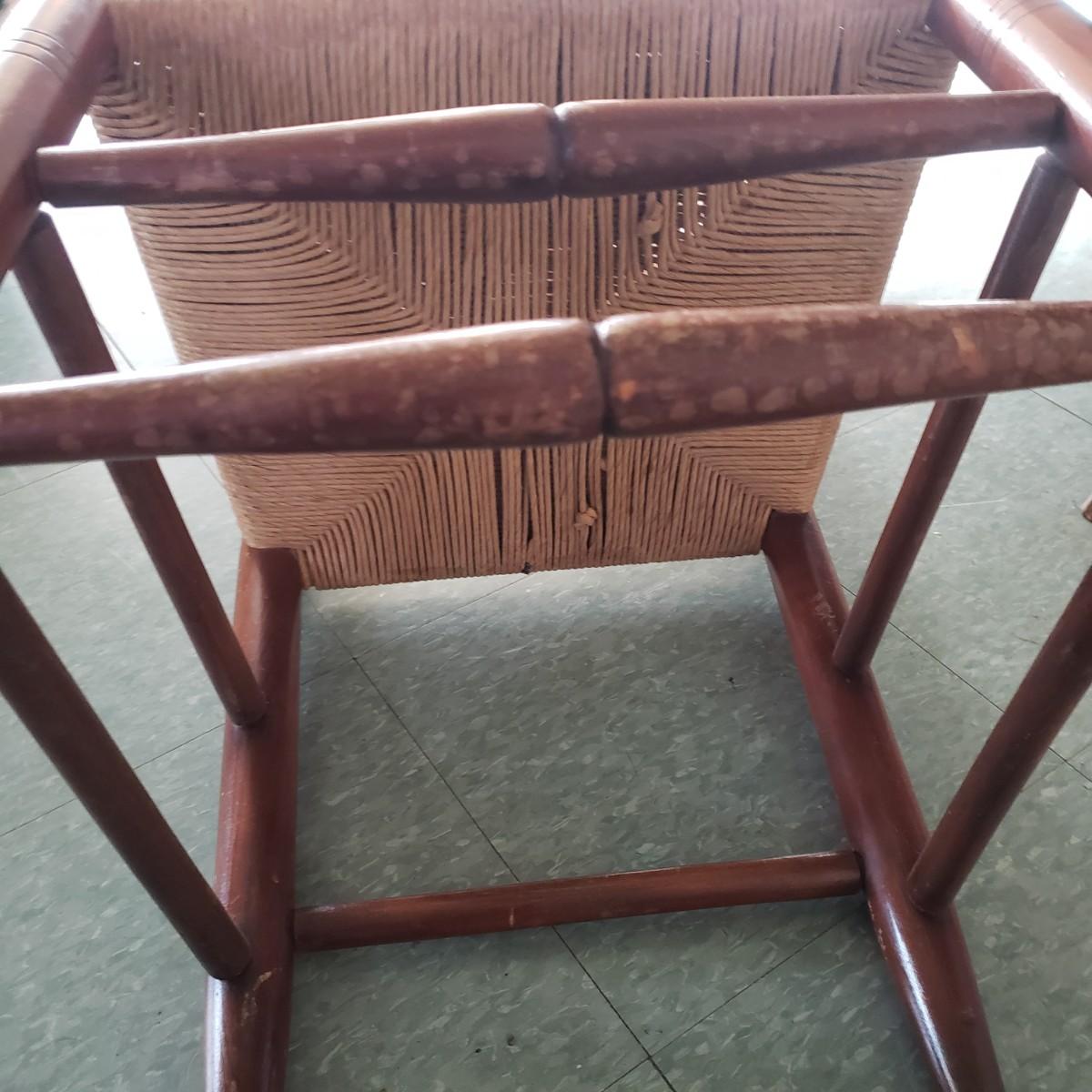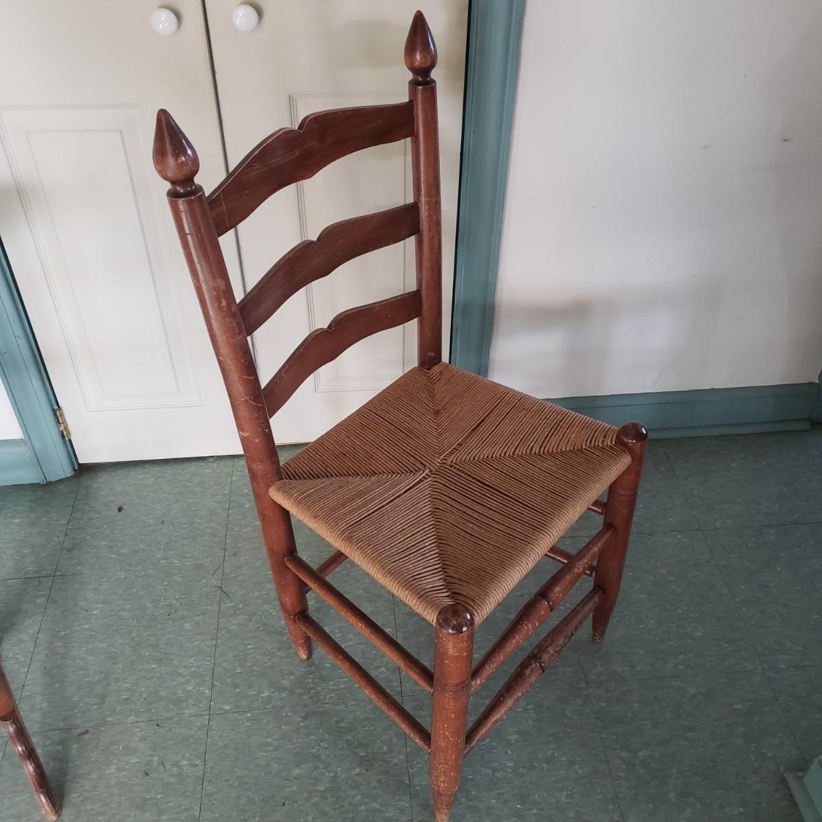 This two piece lot features a wooden side table in an Edwardian style that measures 29” x 16” x 29"H. Table is solid wood but is slightly rickety. Some wear to the top. The rush wooden chair measures 17" x 15" x 37"H, with a seat height of 18". The chair appears to be solid and blemish free. Please see photos for details. Local Pickup Only