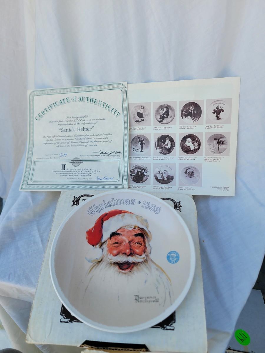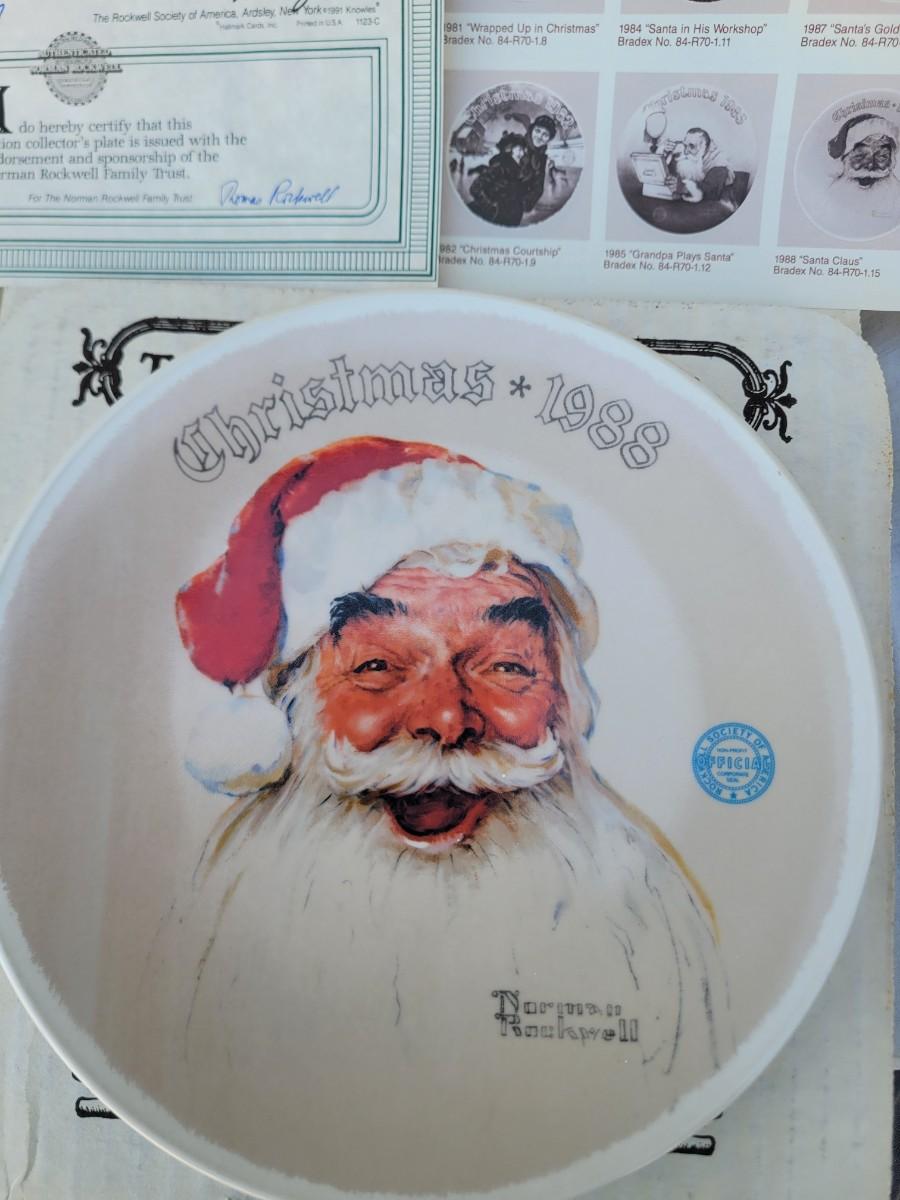 Edwin M Knowles China collector plate featuring Norman Rockwell's iconic painting of Santa Claus, titled "Christmas 1988"