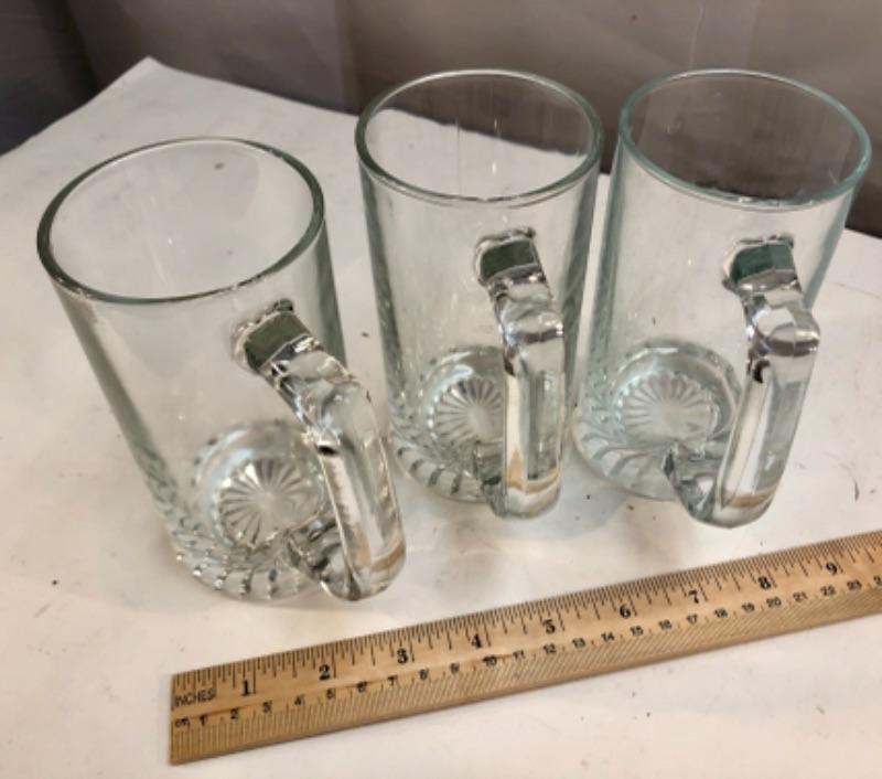 Set of 3 heavy glass bar mugs. Good condition.