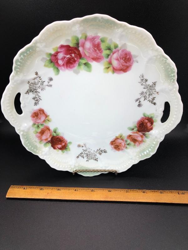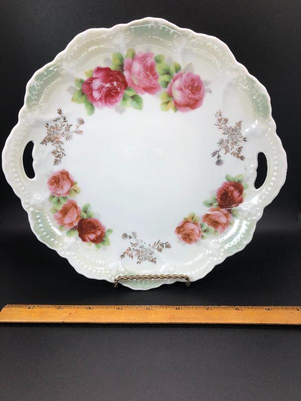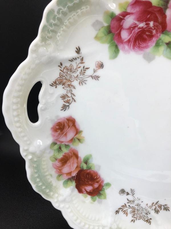 Antique Porcelain Pink Rose Handled Cake Plate Germany