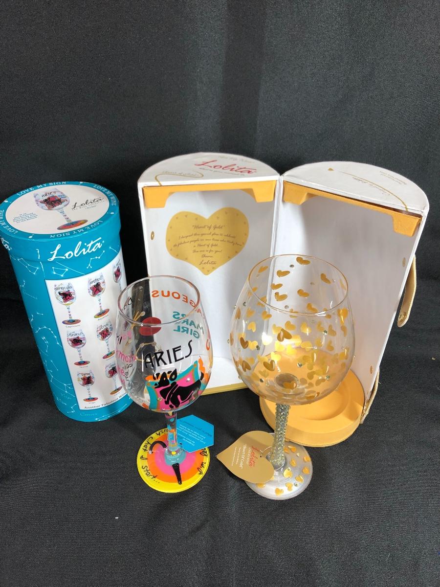 Set of 2 Lolita wine glasses. Collectible glasses with original boxes. Both in great condition.