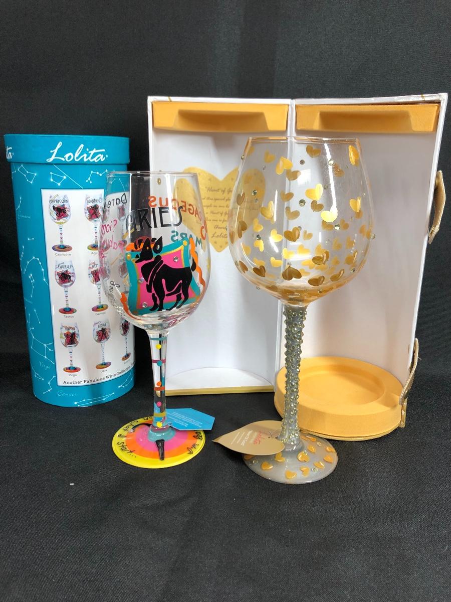 Set of 2 Lolita Collectible Wine Glasses with Boxes