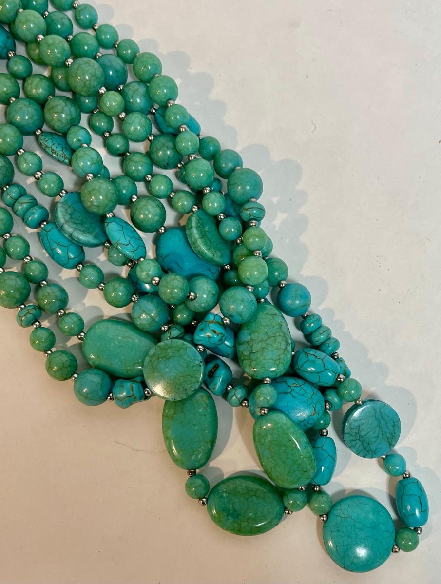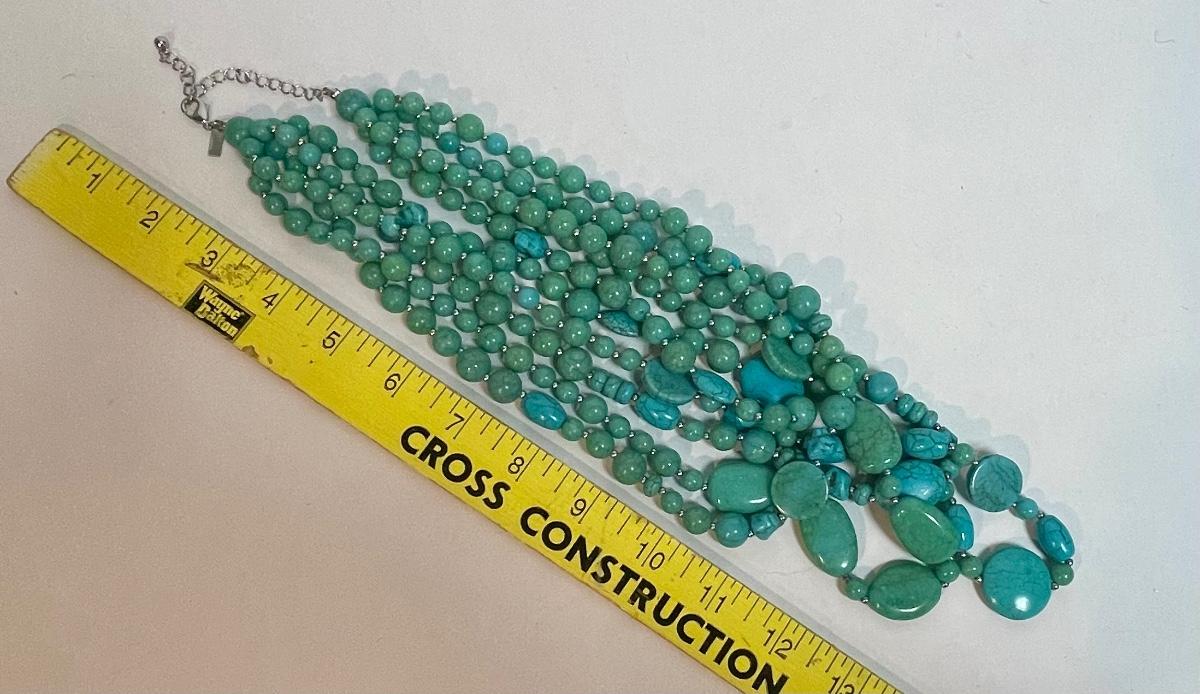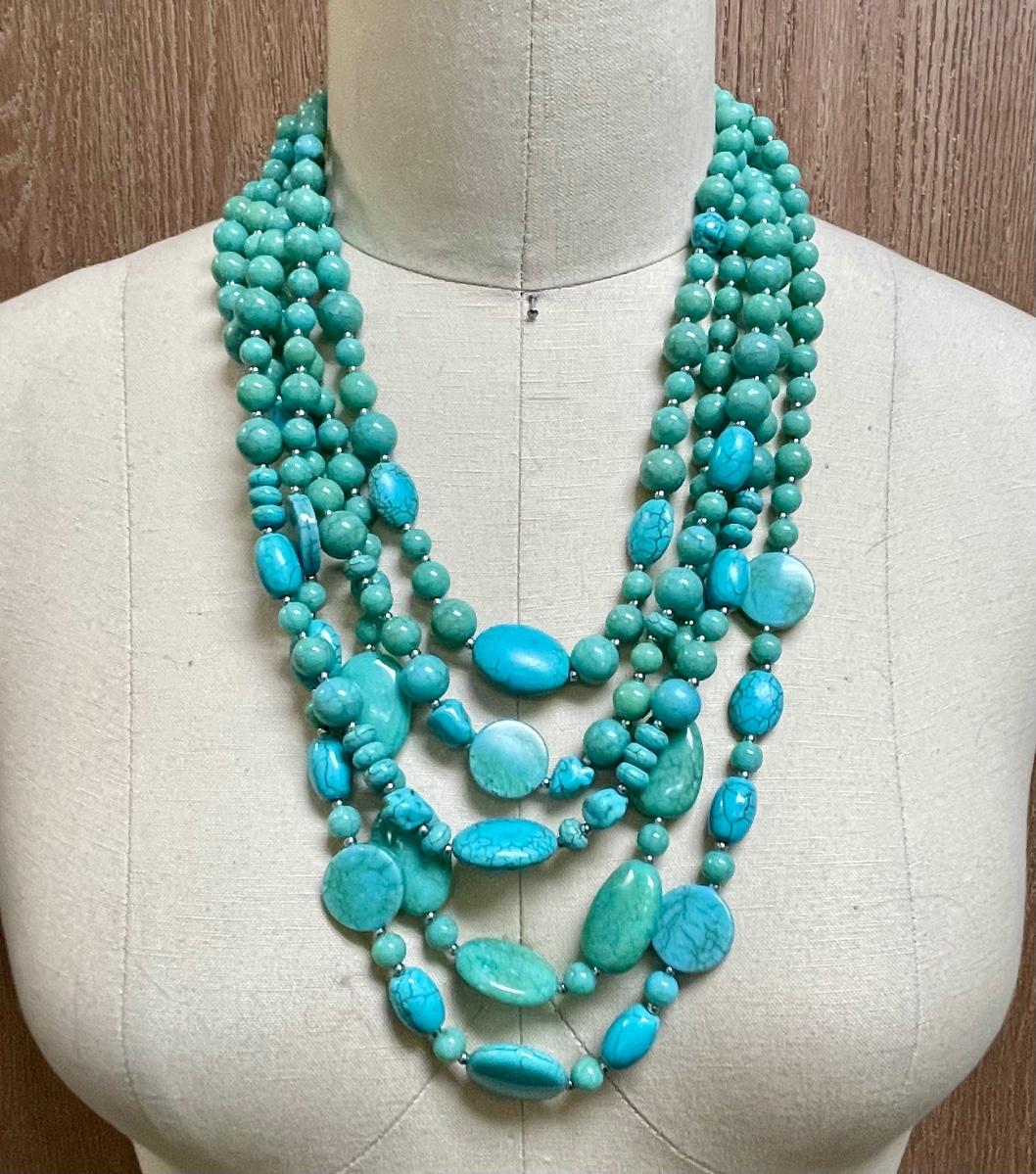 Faux Turquoise Chunky Beaded 5 Strand Statement Necklace