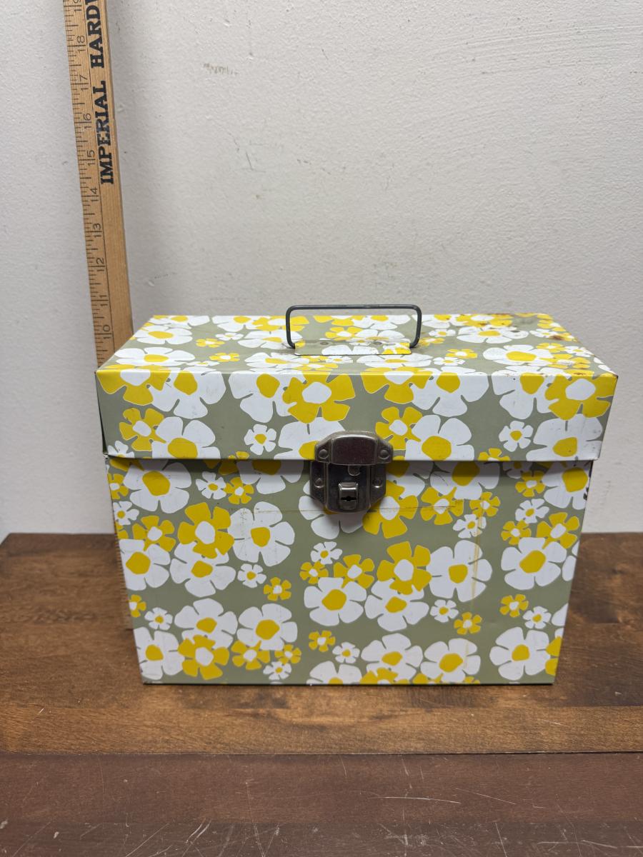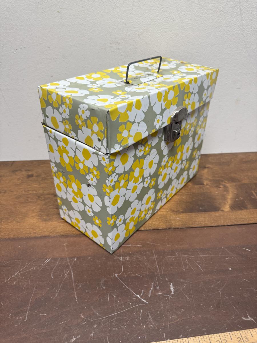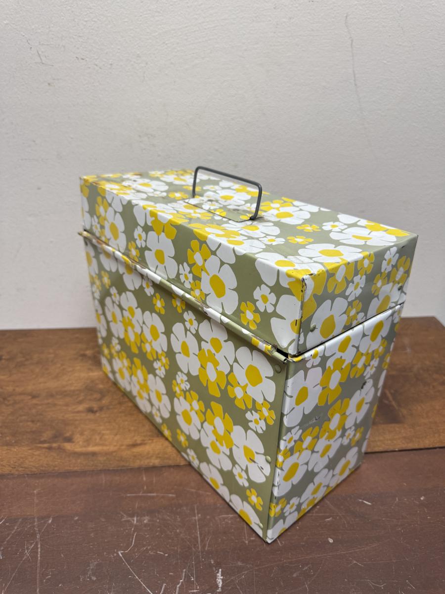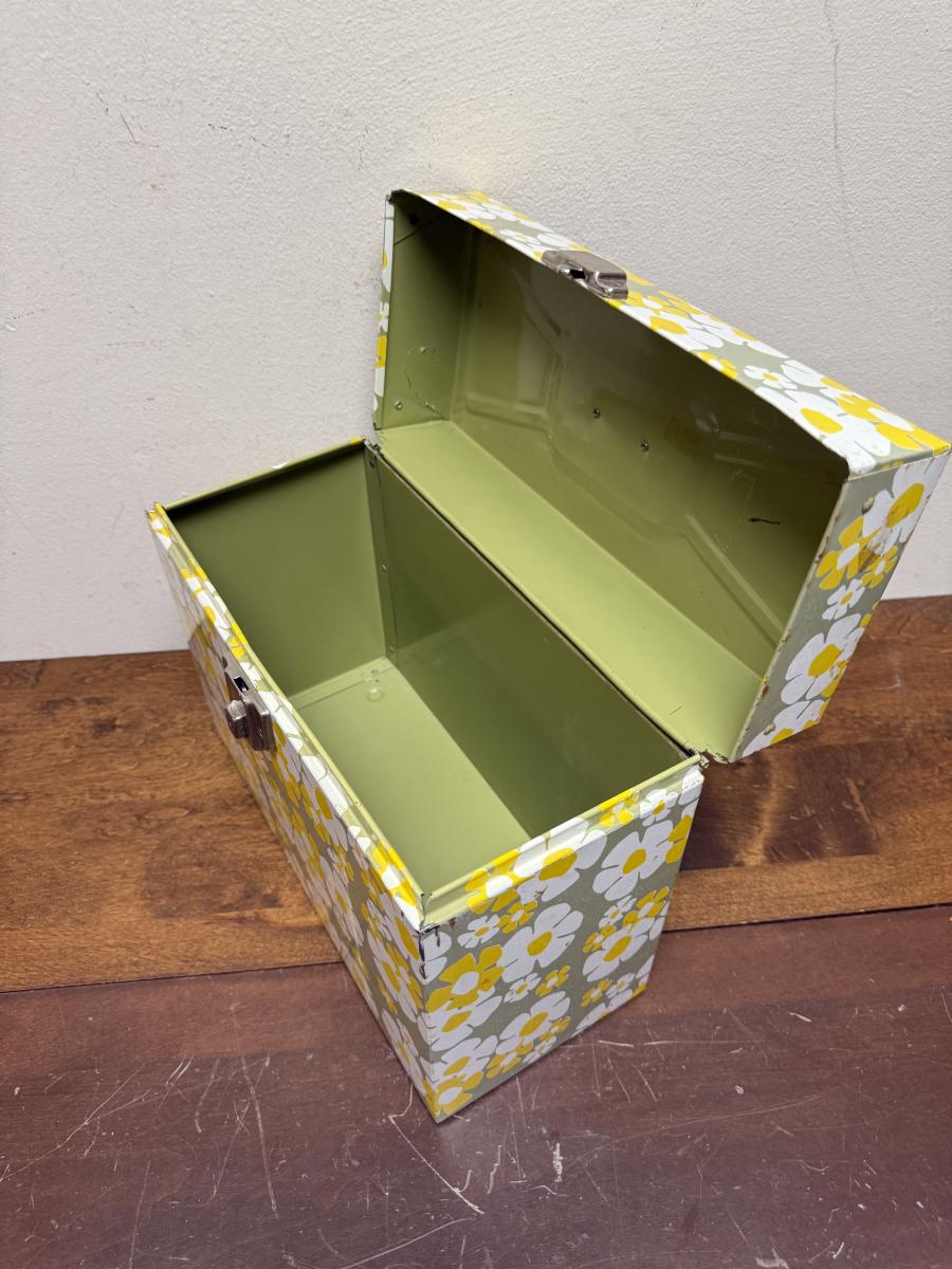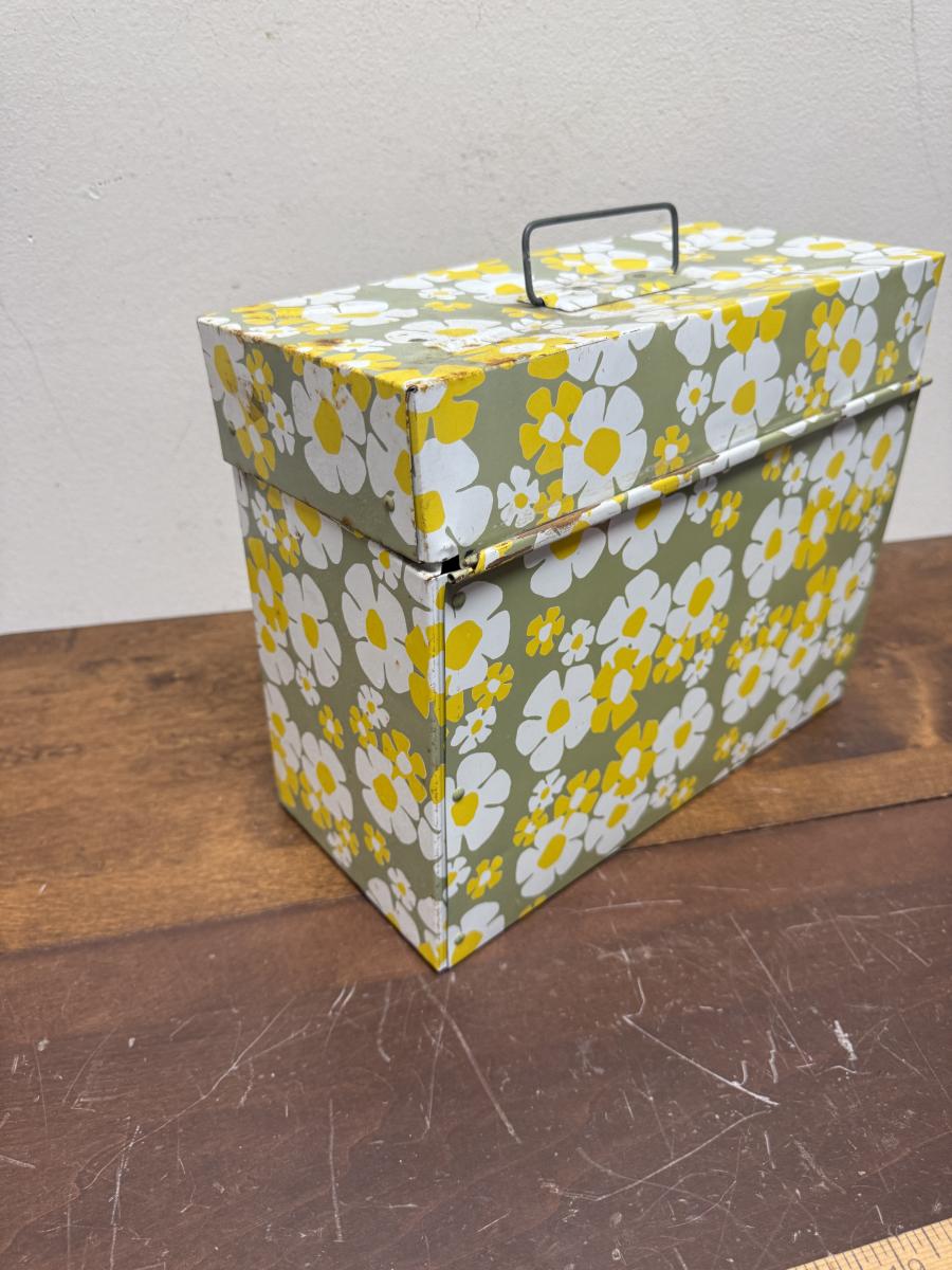 1970's Metal File Box Flower Power Groovy Colors Daisy Floral Design