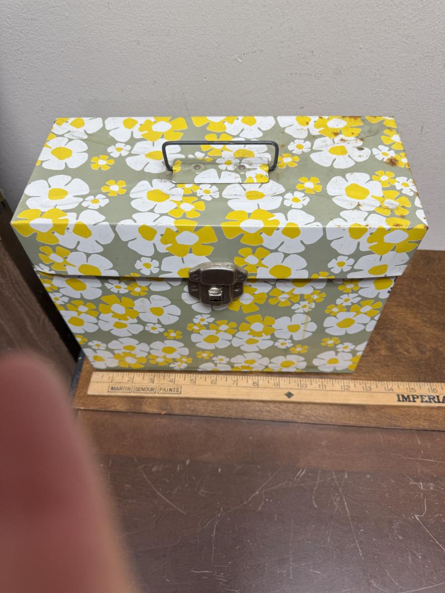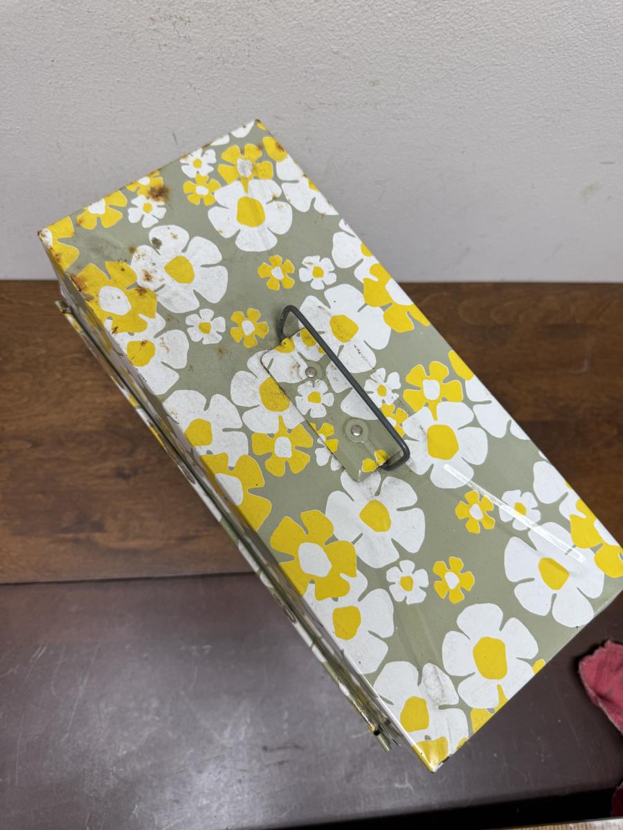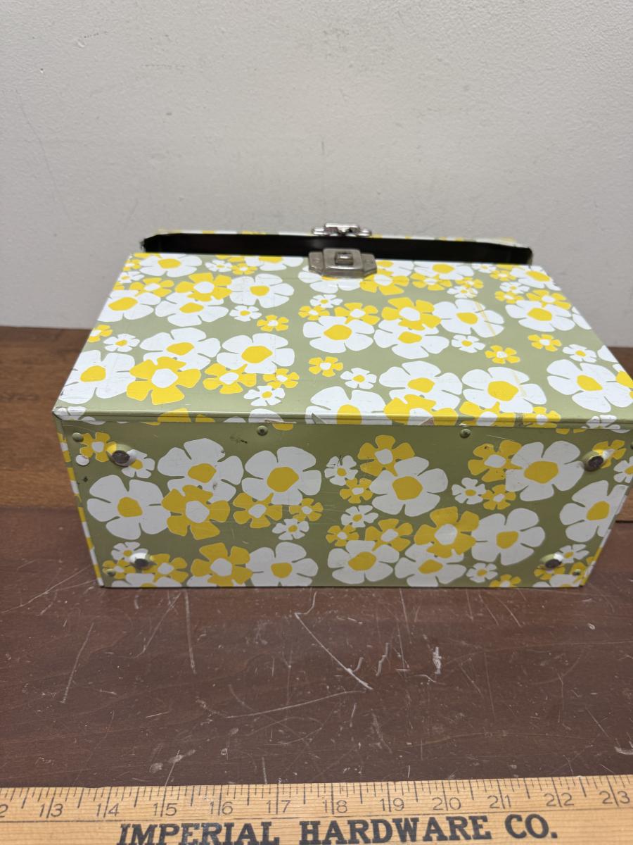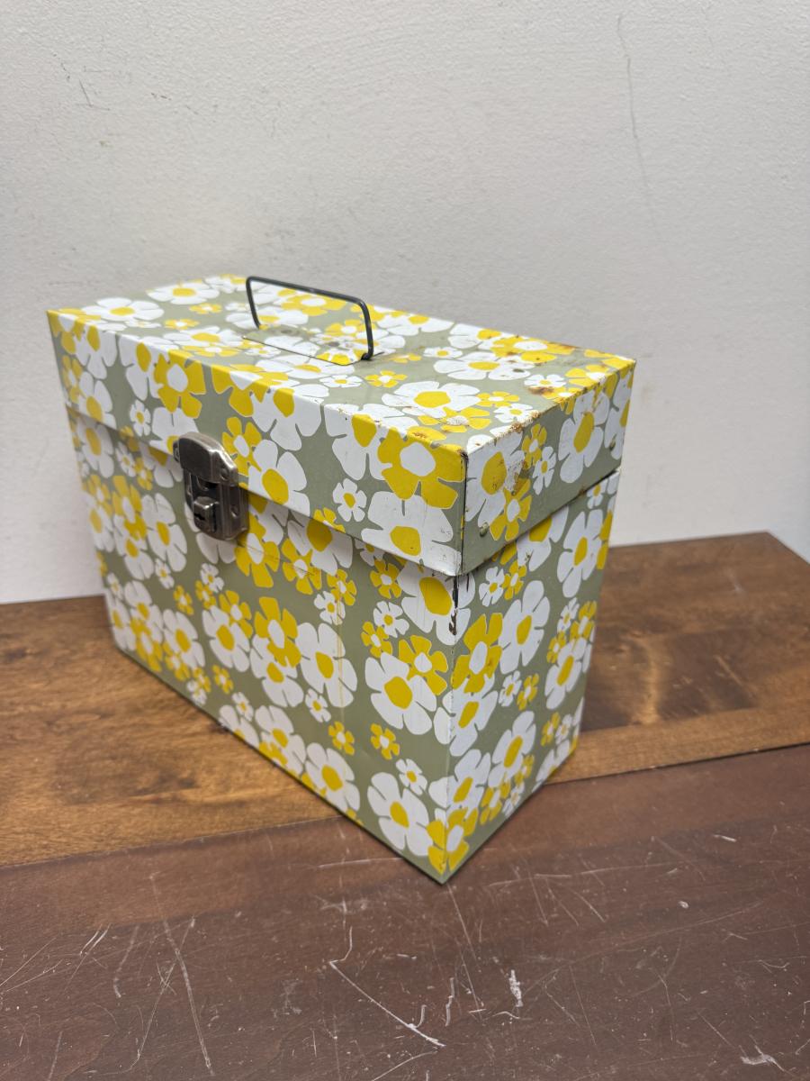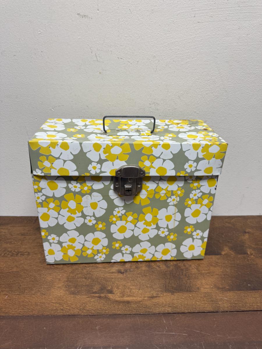 1970's Metal File Box Flower Power Groovy Colors Daisy Floral Design