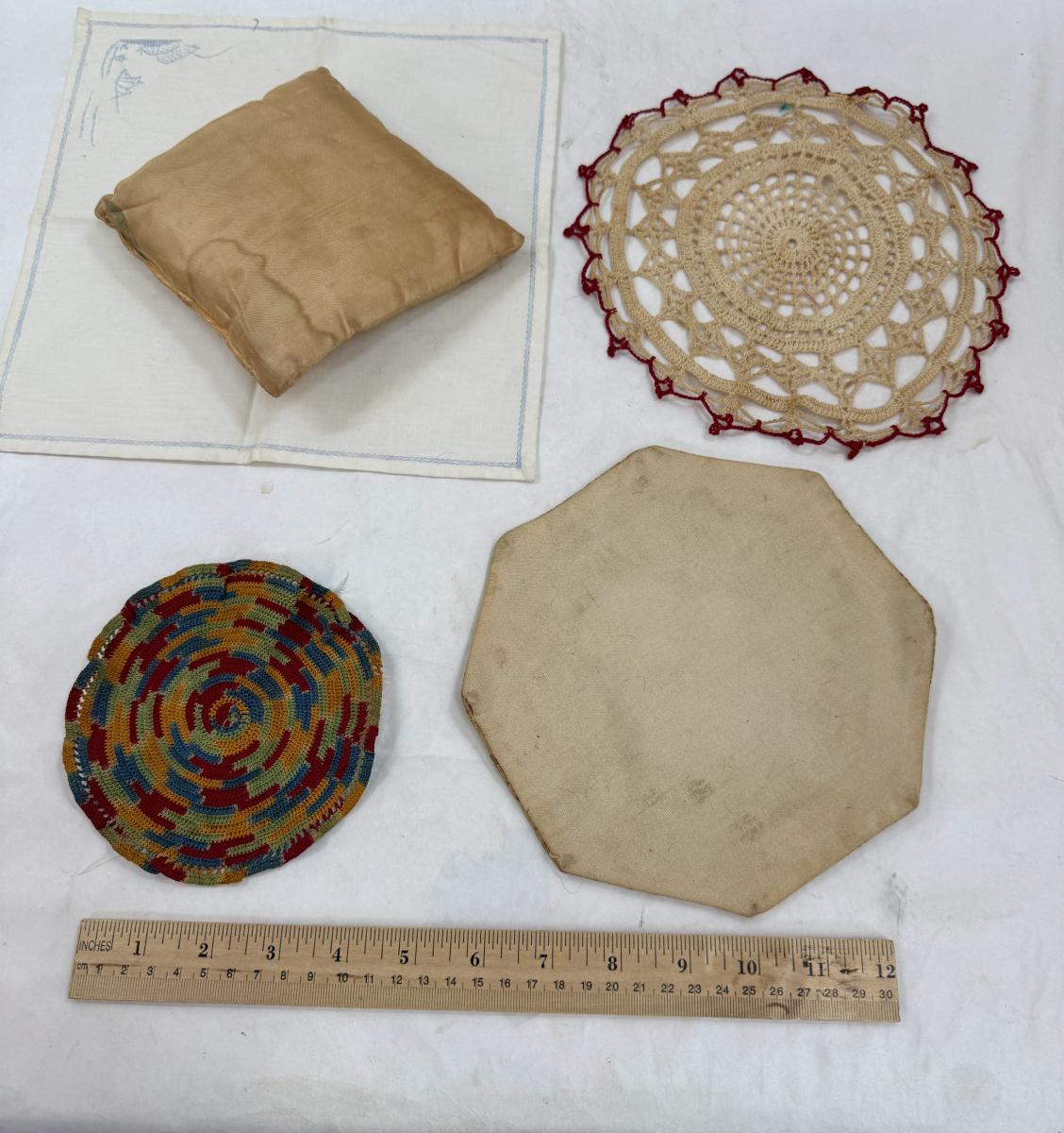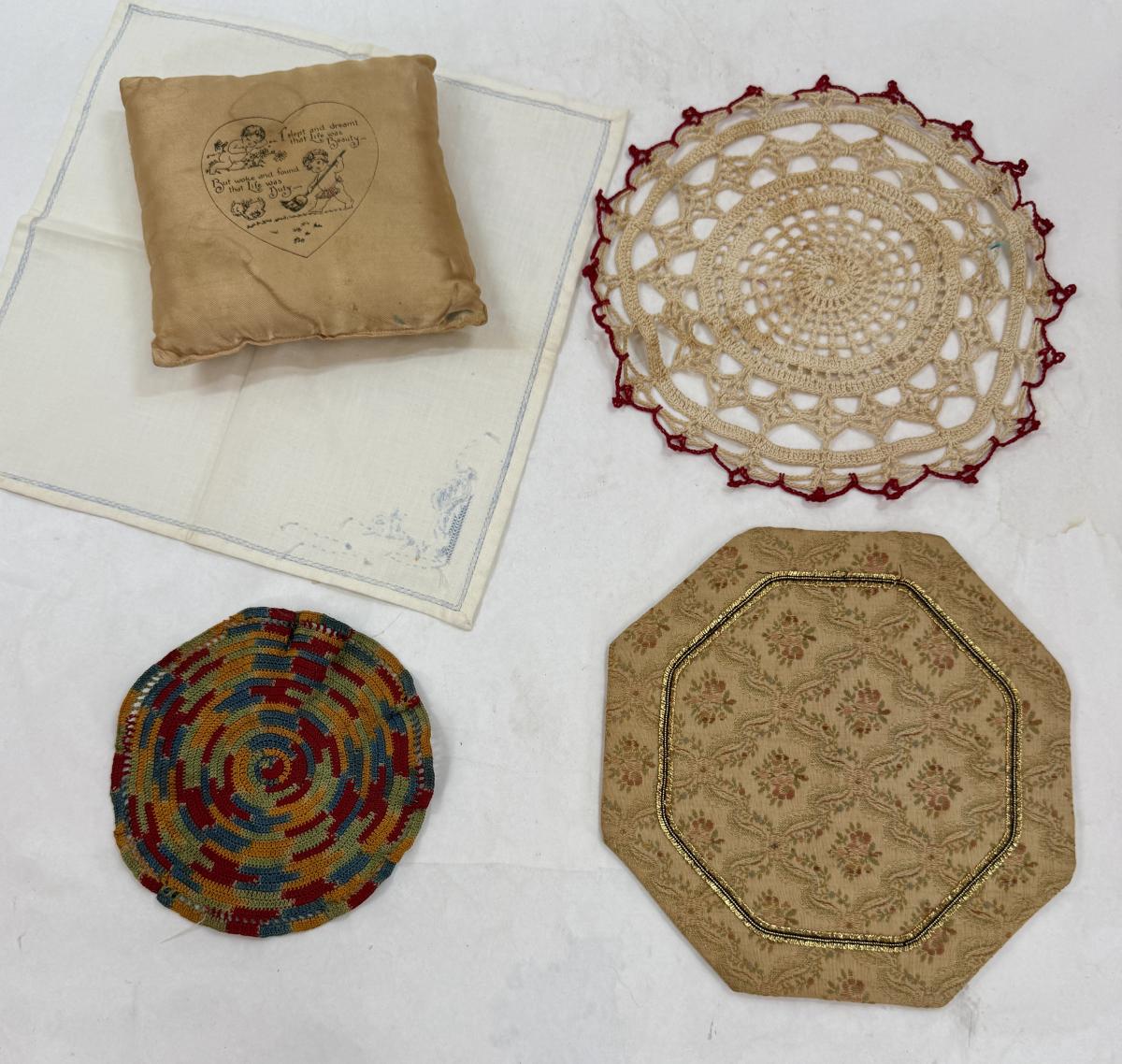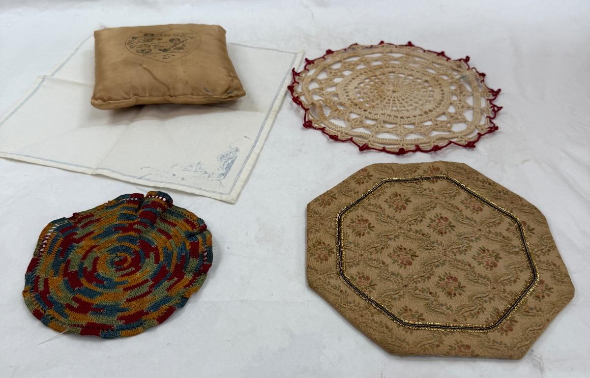 Vintage Linen Textiles Handmade Dollies and Miniature Pillow
