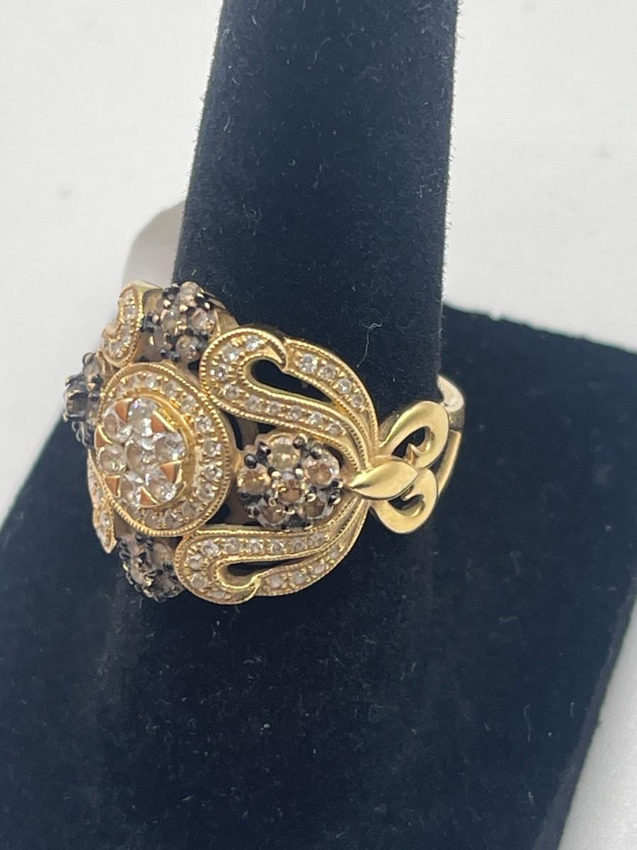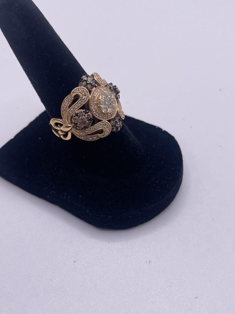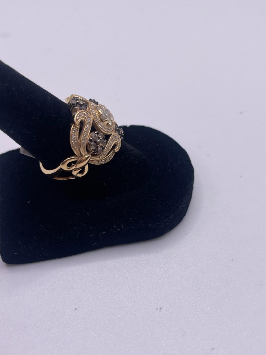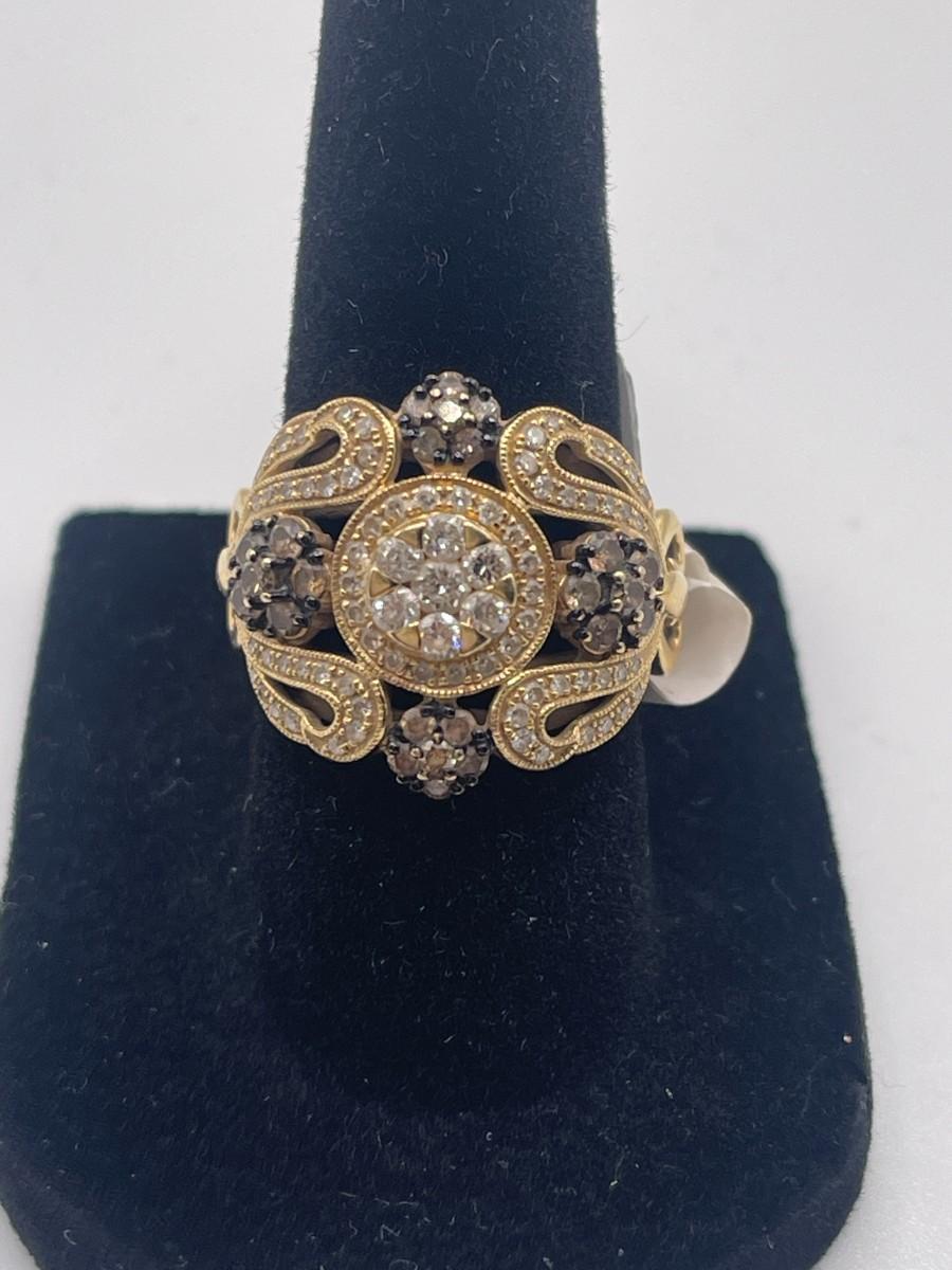 Effy 14k yellow gold ring with espresso and white diamonds. Very good condition with some scratching throughout. Stamped 14k and EFFY. Size 7.