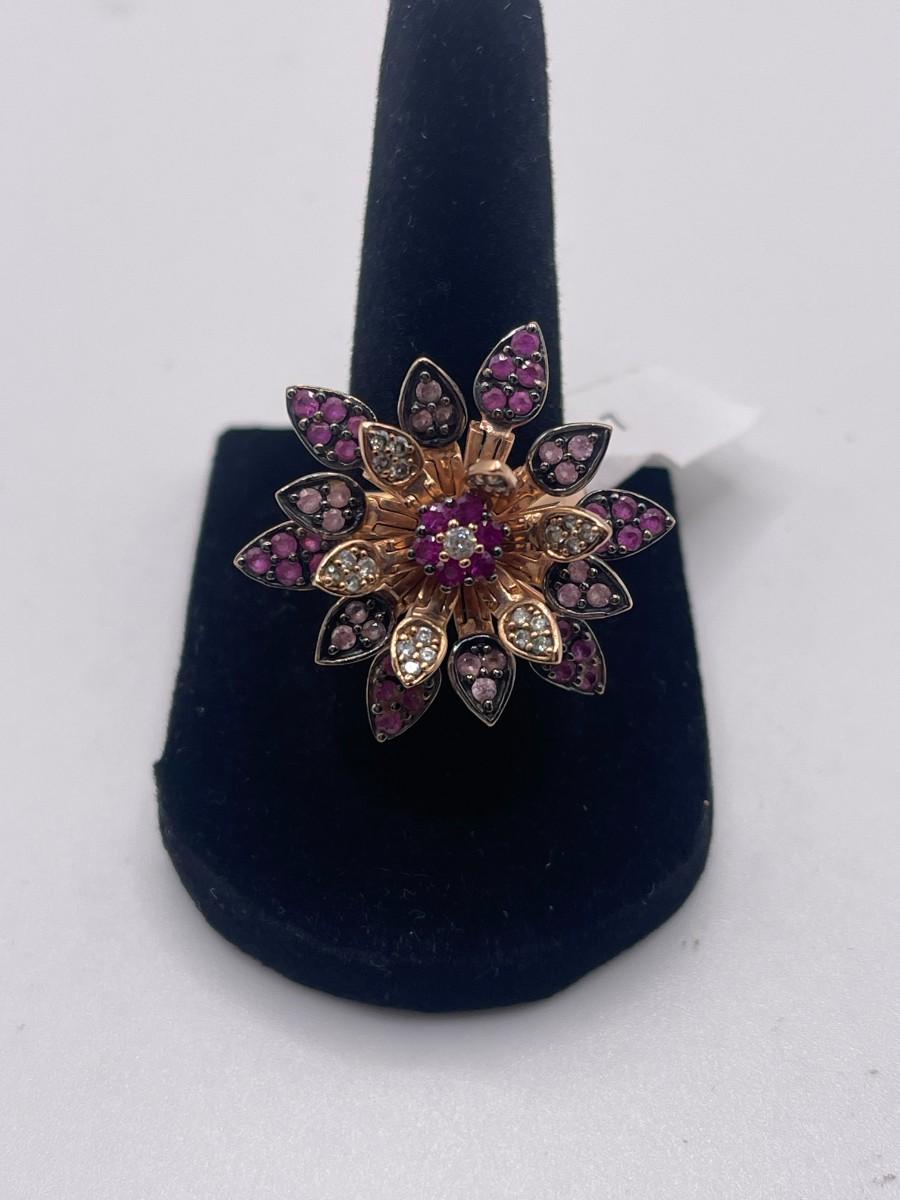 Effy Nature 14K Rose Gold Ruby, Sapphire and Diamond Blossoming Flower Ring