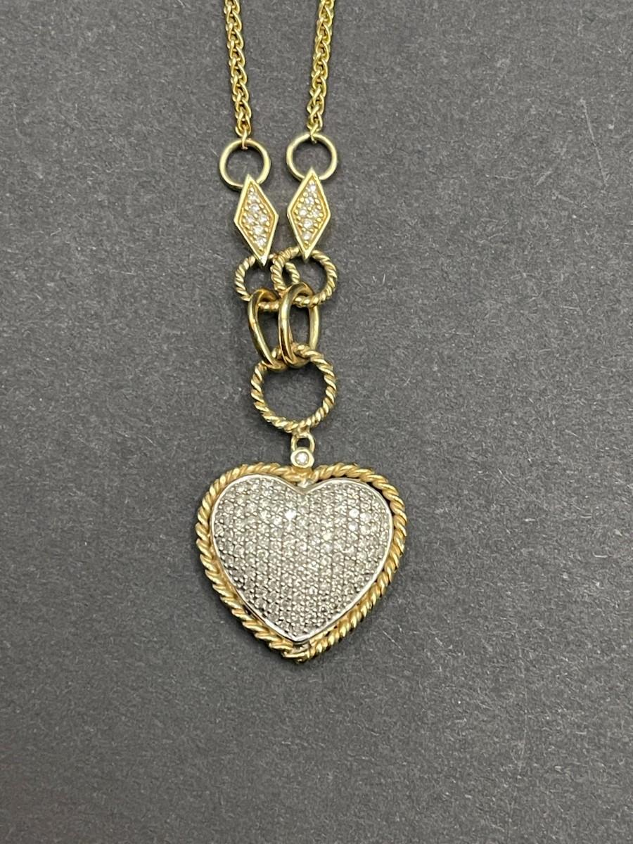 EFFY Two tone heart pendant with diamonds. 18" necklace. G I1. Good condition.