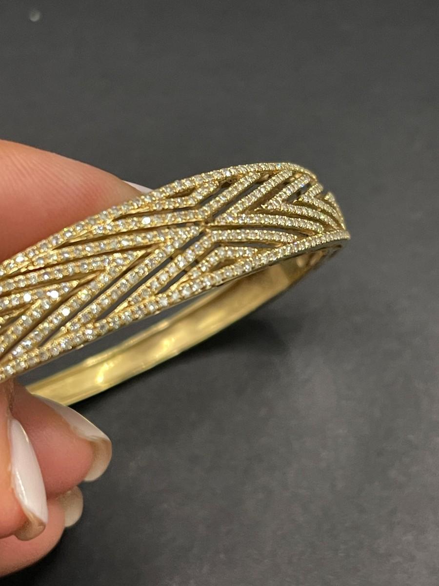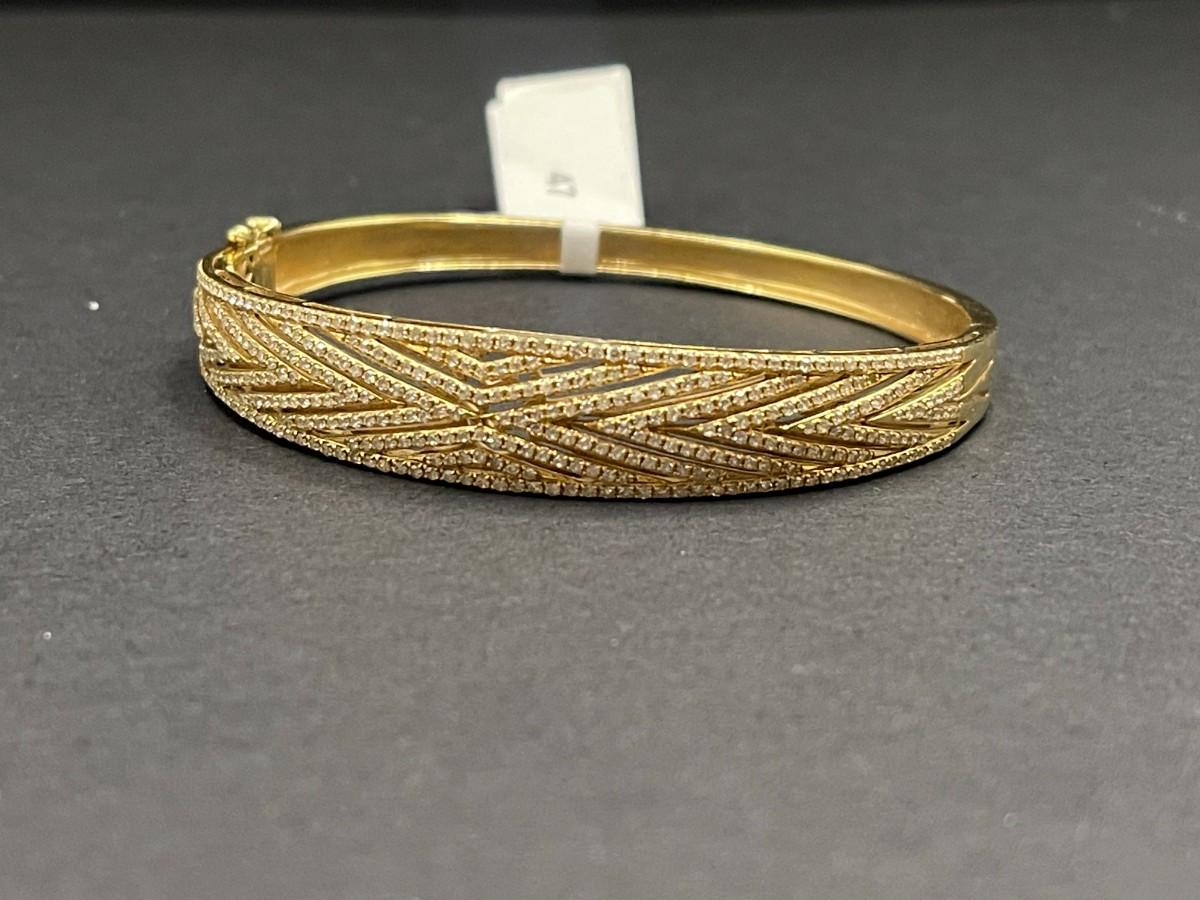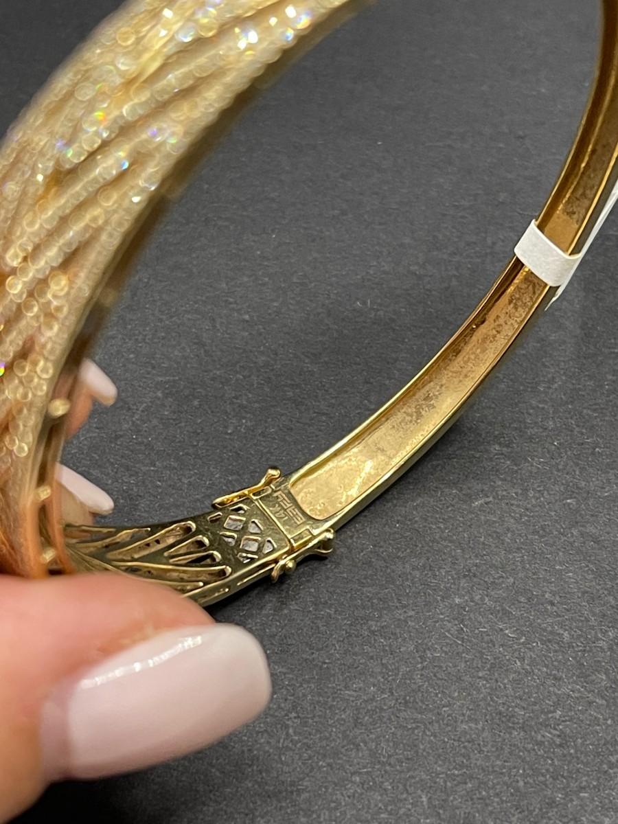 EFFY Yellow gold and diamond hinged bangle bracelet. Good condition. Total weight 16.74 grams; 1.92 cttw. 6 3/4".