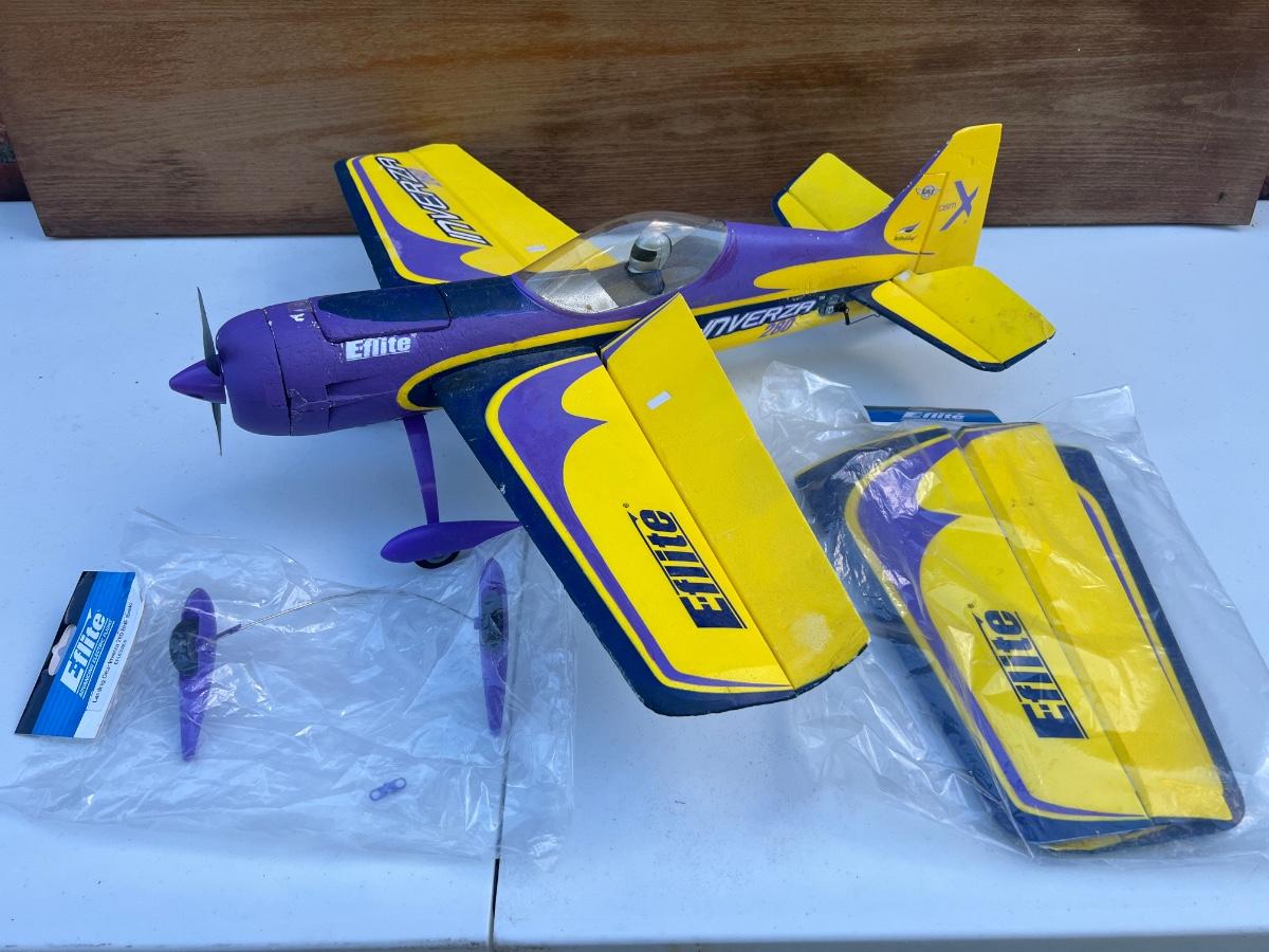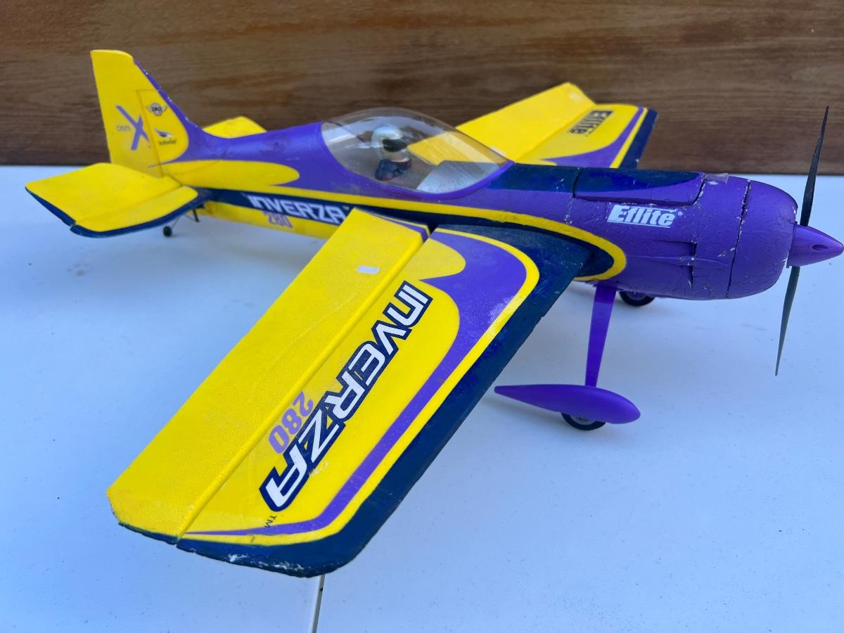 E-Flite inverza 280. Comes exactly as pictured. Plane has not been tested and is being sold AS-IS. Comes with new wing set and new landing gear. Measures 26”Wing to wing x 25”L.