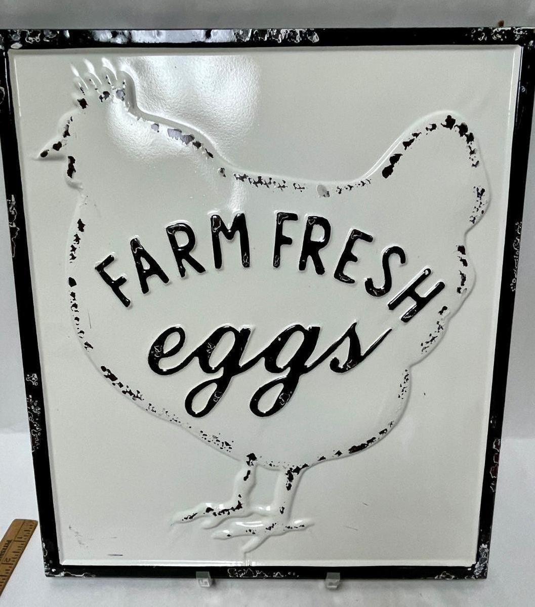 Metal Sign with a Chicken Hen - advertising Farm Fresh Eggs