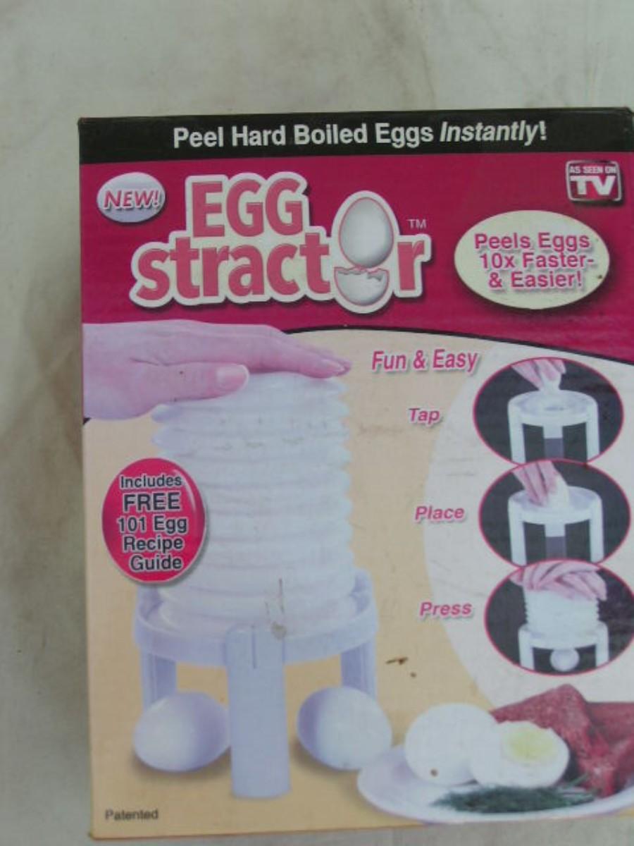 “Egg Stractor” hard boiled egg peeler device. As seen on TV.