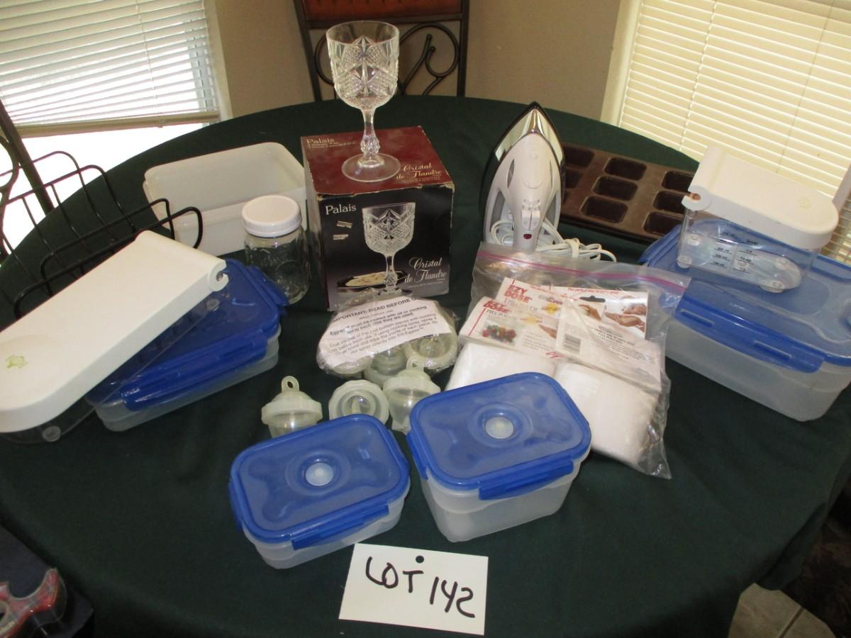 Assorted kitchenware, Palais Crystal Goblets, Lockin Containers