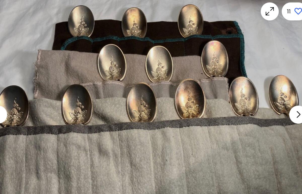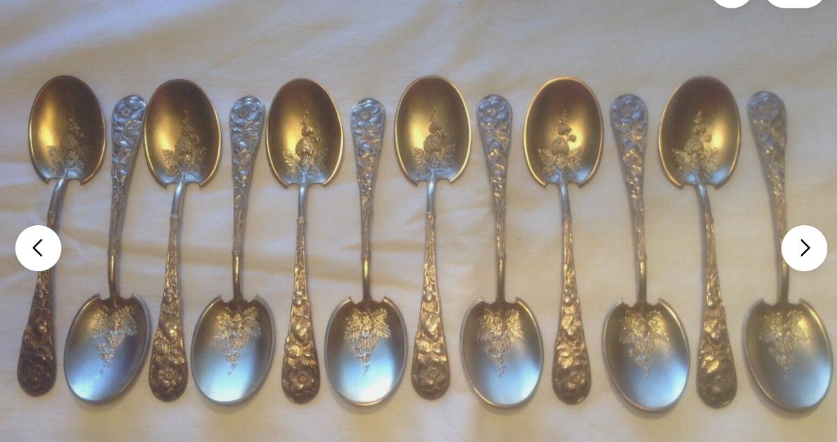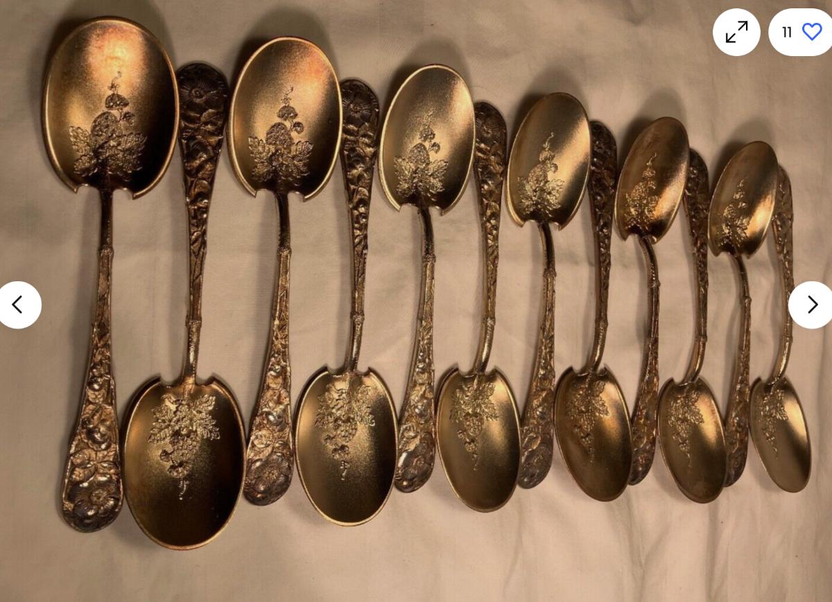 Excellent condition. Gold tone all over, (.925) Sterling Silver throughout. Replacement.com has these for $175 per spoon! The obverse side of the sppon has the letter "E" Monogrammed. This item has a reserve.