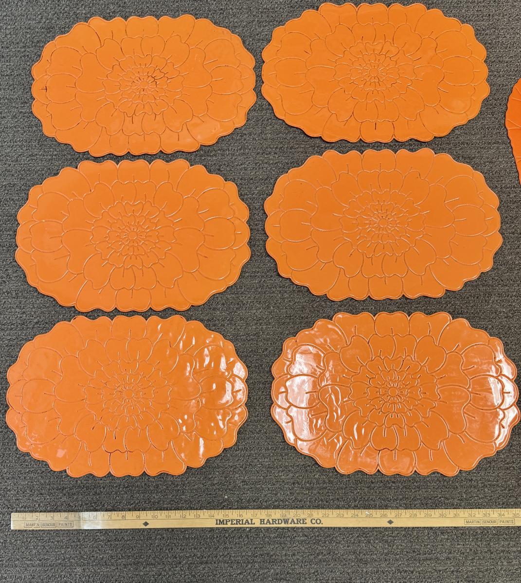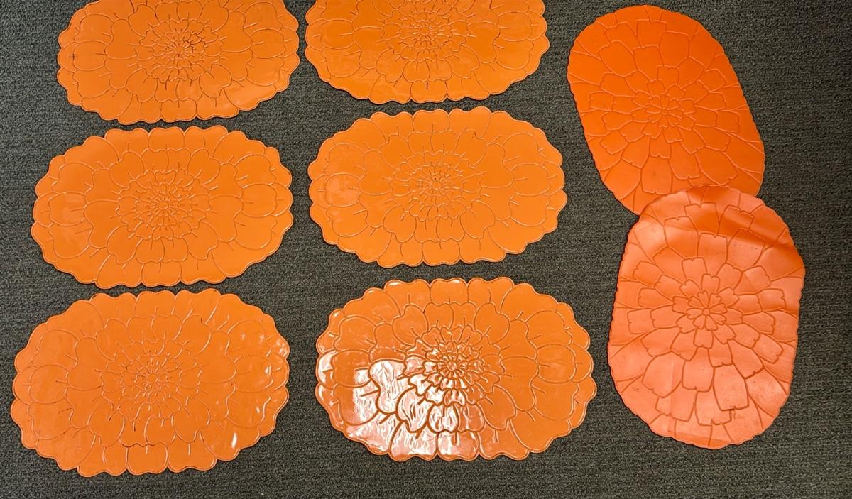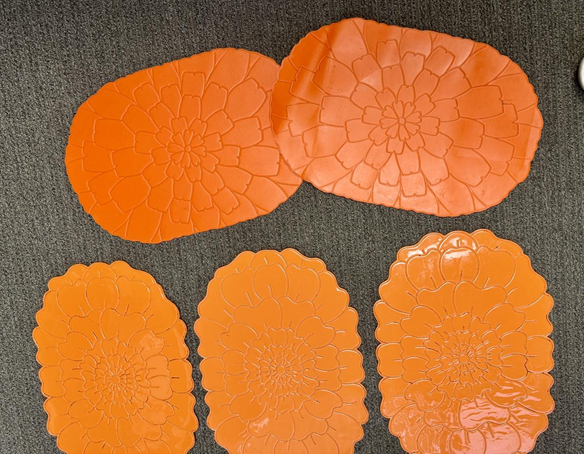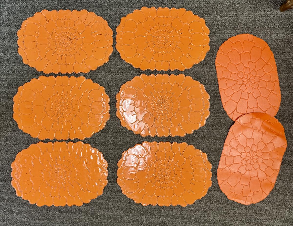 Lot of 8 bright orange plastic placemats - 2 are slightly different