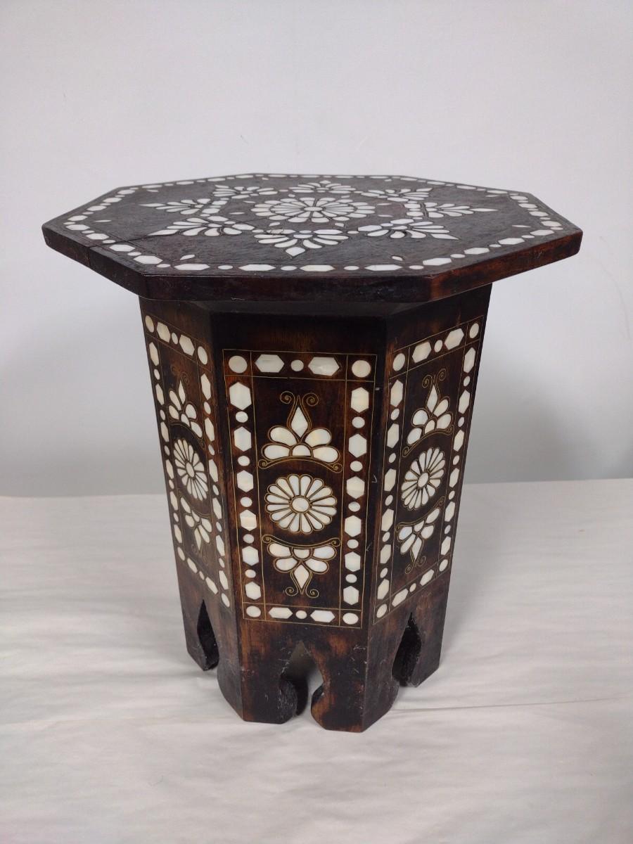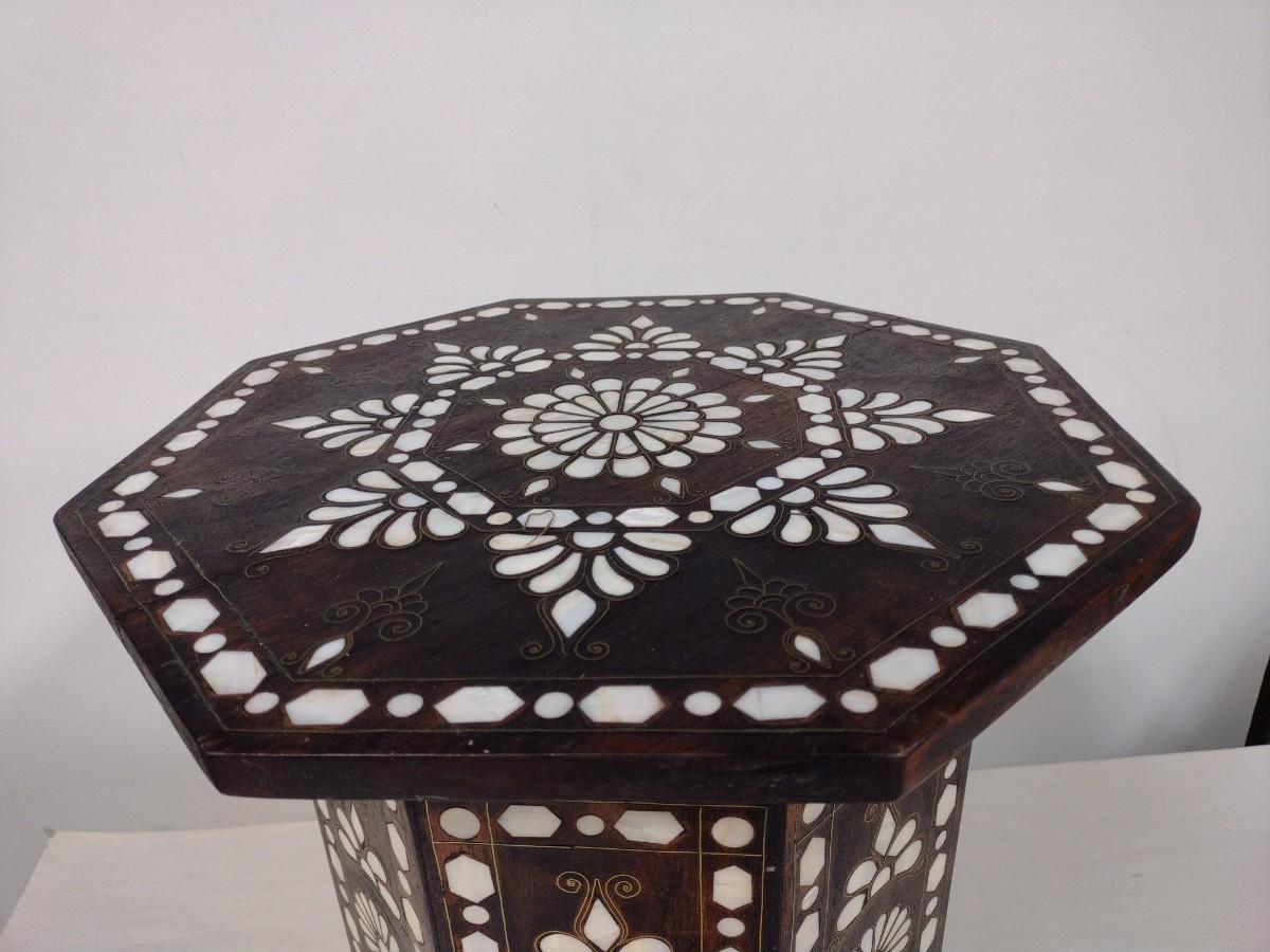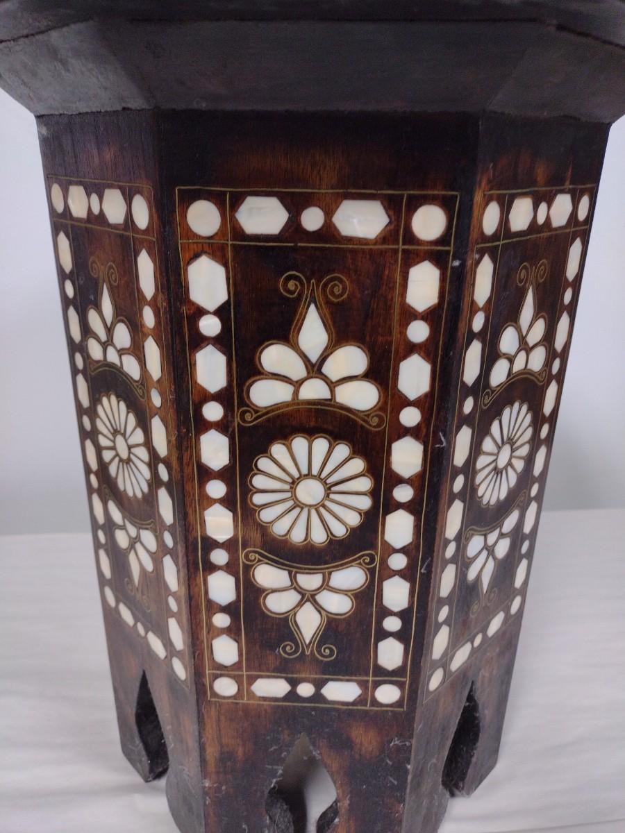 Egyptian Hexagonal Mahogany Finish Mother of Pearl Inlay Side Table